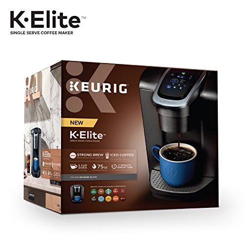 Details: The Keurig K-Elite single serve brewer blends a premium Brushed Slate finish and programmable features to deliver both modern design and the ultimate in beverage customization. With a striking brushed finish and metal details, it’s a stylish addition to any kitchen. The Keurig K-Elite single serve coffee maker features Strong Brew for when you want to brew a bolder cup of coffee, and an Iced button to brew hot over ice for a refreshing, full-flavored iced coffee. It features five brew sizes, so you can brew your favorite coffee, tea, hot cocoa, or iced beverage at the touch of a button. Choose from hundreds of delicious varieties of K-Cup pods, or brew your own ground coffee using the Universal My K-Cup Reusable Coffee Filter (sold separately). The K-Elite brewer offers programmable features like auto on and temperature control, as well as providing hot water on demand for instant soups and oatmeal, and the large 75oz removable water reservoir lets you brew 8 cups between refills.