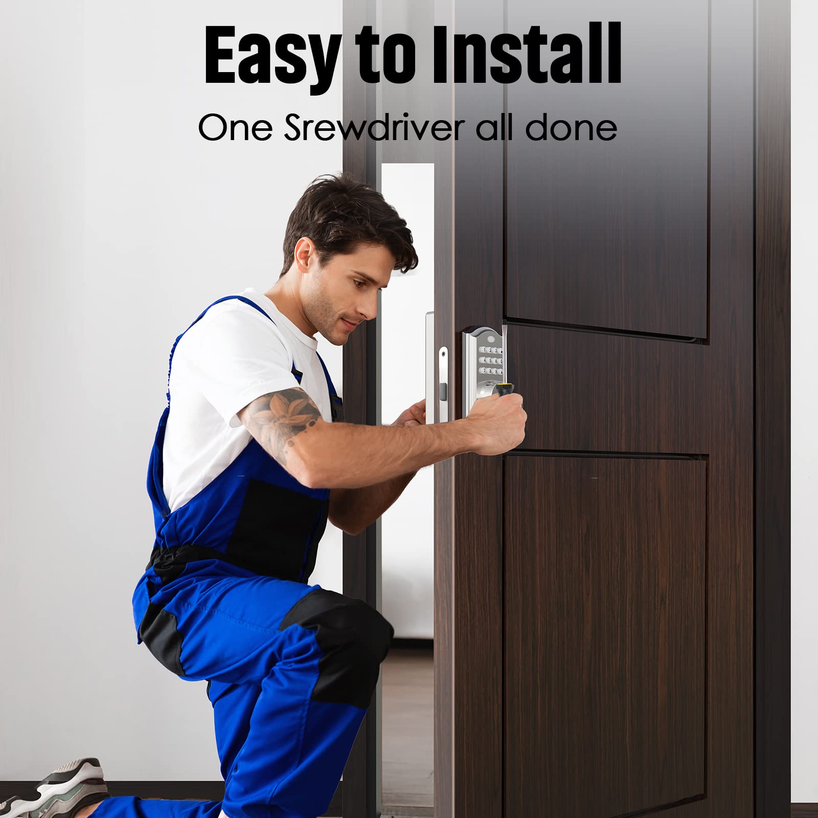 - 【Maximum Convenience】Give your pet sitter the password to enter your place once when you're out of town and assign up to 50 different passwords to trusted friends and family to experience convenience. The keyless deadbolt is equipped with an alarm alert function that automatically locks within 90 seconds when it has been tried and tested >5 times.