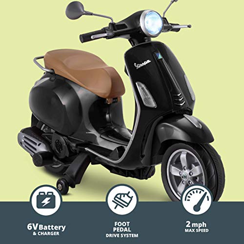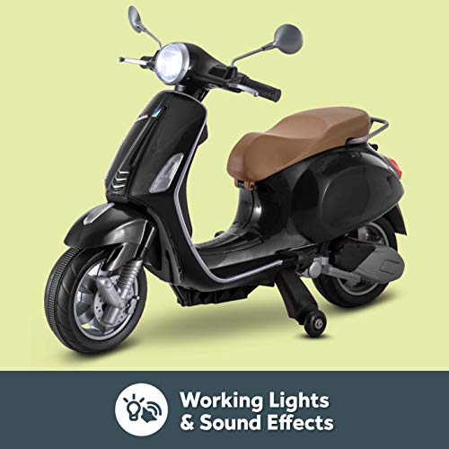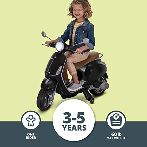 Kid Trax Toddler Vespa Scooter Electric Ride On Toy, 3-5 Years Old, 6 Volt, Max Weight 60 lbs, Black, 6V (KT1419AZA)