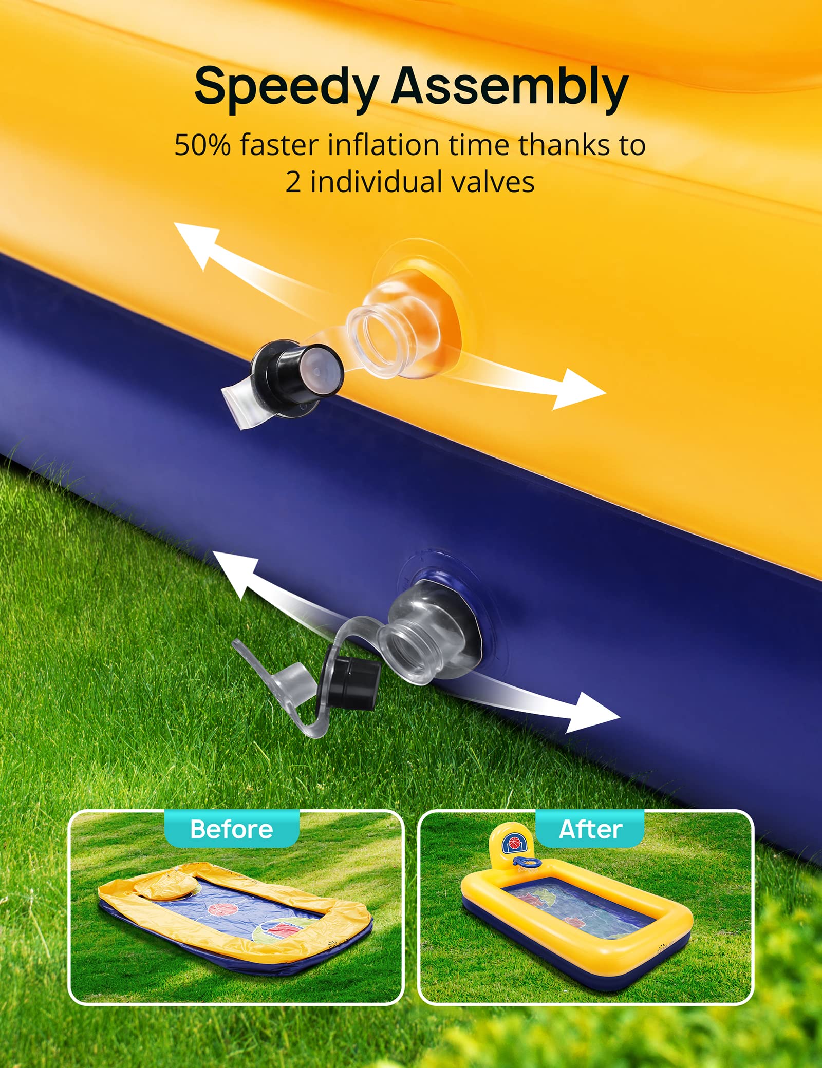 - Space To Dip and Dunk: The inflatable pool measures at 81'' x 55'' x 15.7'', allowing plenty of room for 3-4 kids to dip in the water and shoot some hoops