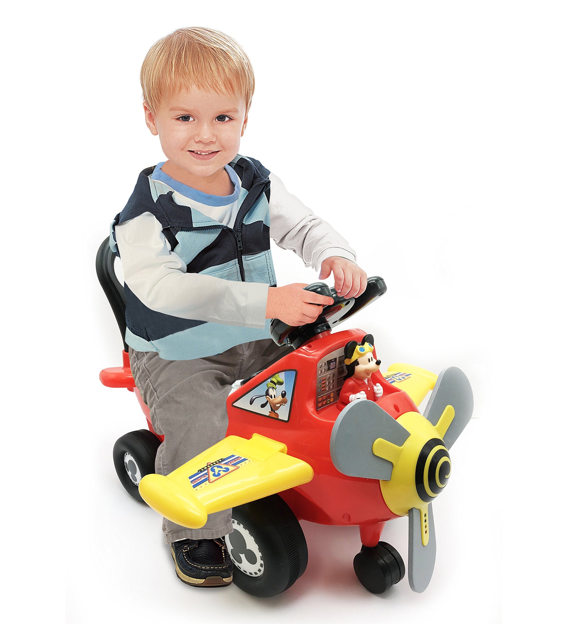 Details: Ride On The Mickey Plane As Mickey Moves To The Music. Enjoy The Mickey Mouse March Song, Delightful Music And Radio Frequency Sounds. Shifting Gears And Revving Sound. Realistic Landing & Lift Off Sound. Propellers Rotate To Amazing Light-Up Patterns. 2Aa Batteries, Included. Assembled Product Dimensions (L x W x H) 21.50 x 17.25 x 18.00 Inches
