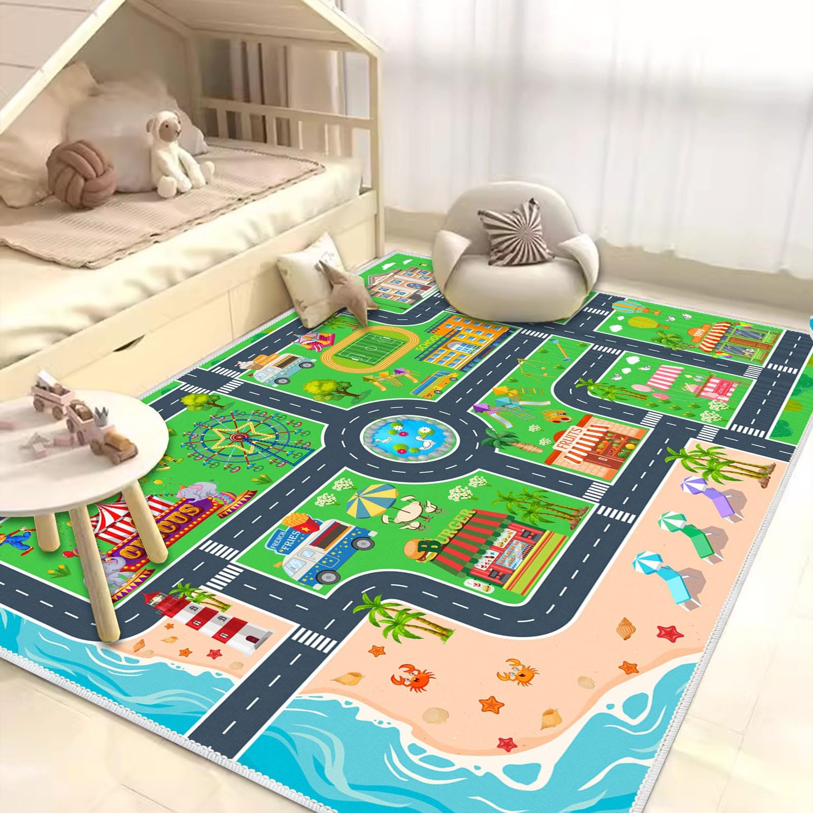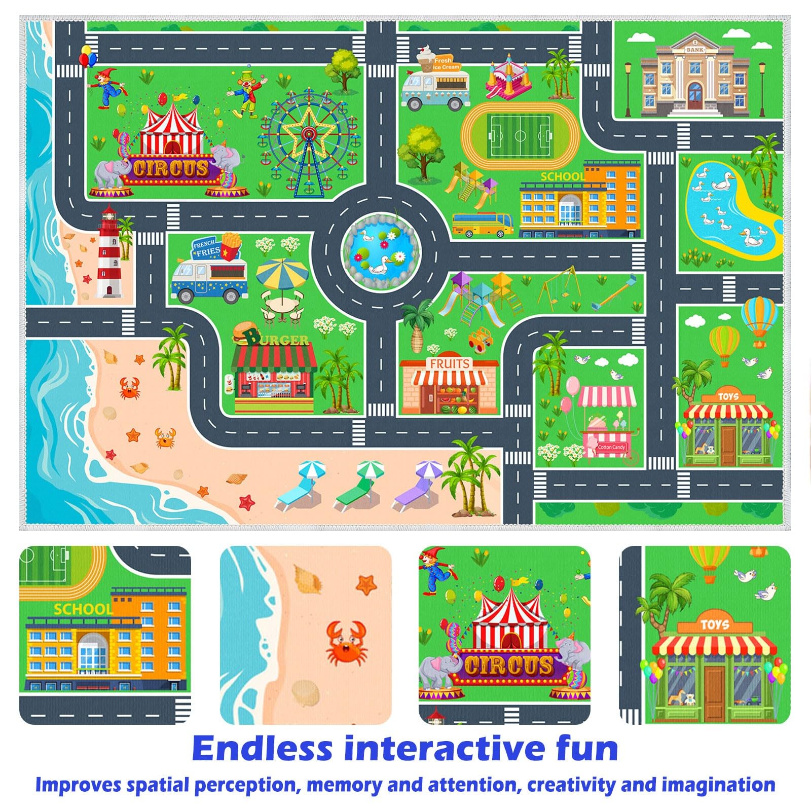 - 【Gift for Kids】If you are looking for a fun, educational and practical gift for your son, daughter, nephew, niece, grandson or granddaughter, our car track carpet will be an ideal gift for kids on birthdays, naming day, Thanksgiving, Christmas!
