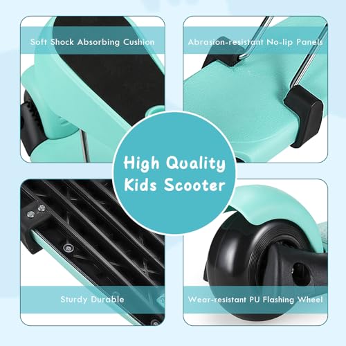 Kids Scooter,Toddler Scooter for Kids 3 Years Old,Adjustable Height and Removable Seat,with 3 LED Wheel Outdoor Activities Birthday Gift for Baby Toddler Boy Girl (Green)