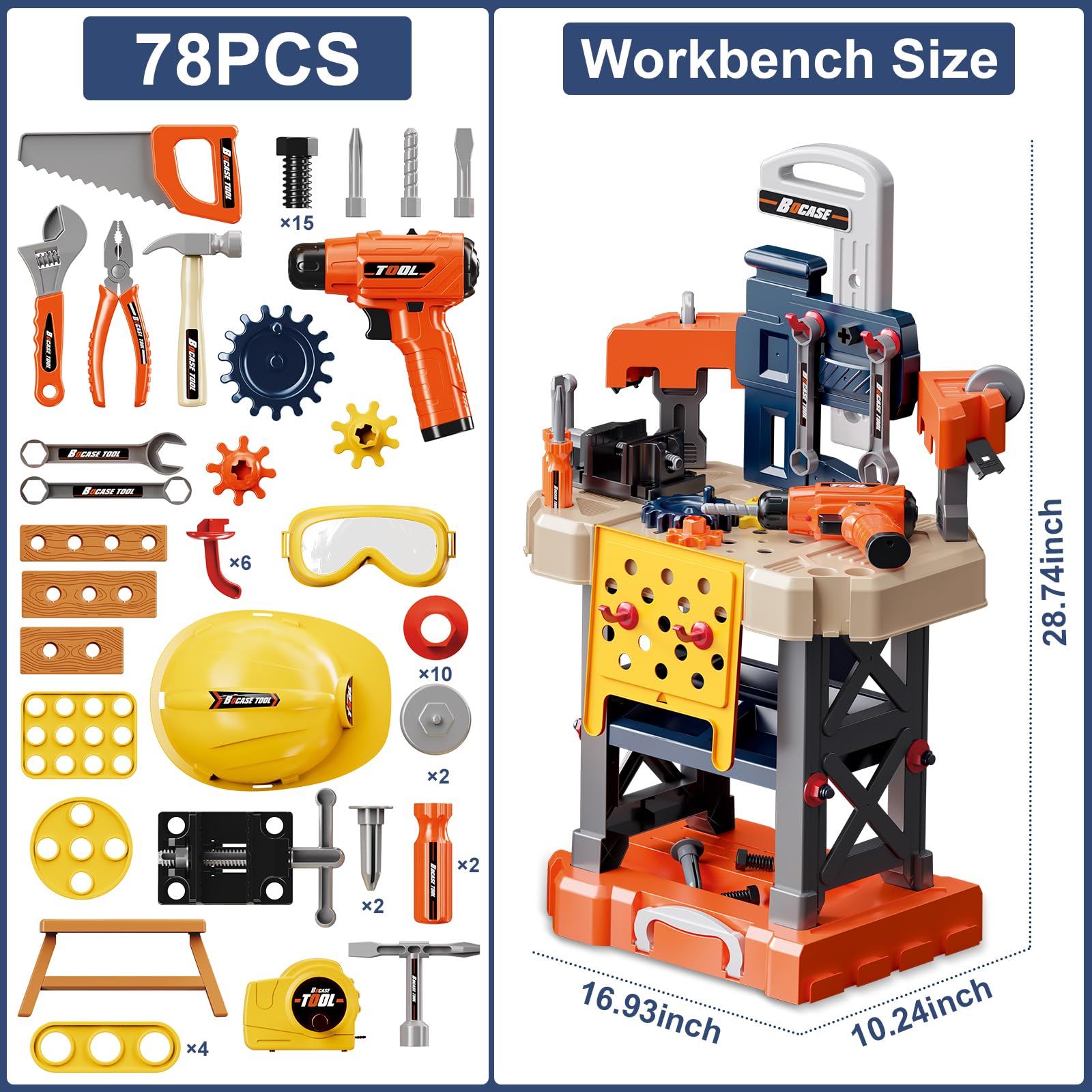 Kids Tool Bench Set with Electric Drill, 78 Pieces