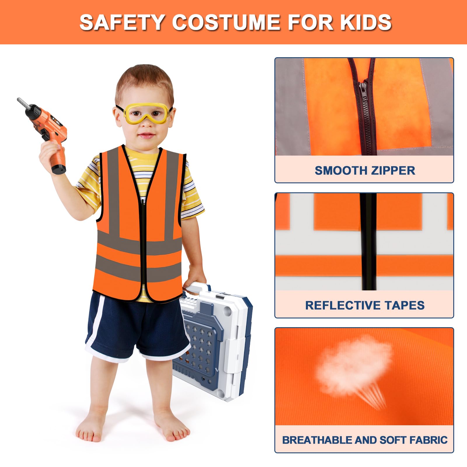 - 【Workbench with Safety Vest】90Pcs kids tool set come with a variety of tool accessories such as electric drill, goggles, hammer, saw, plier, wrench and screwdriver, etc. All are made of durable and sturdy ABS materials, without sharp part, safe for kids playing.