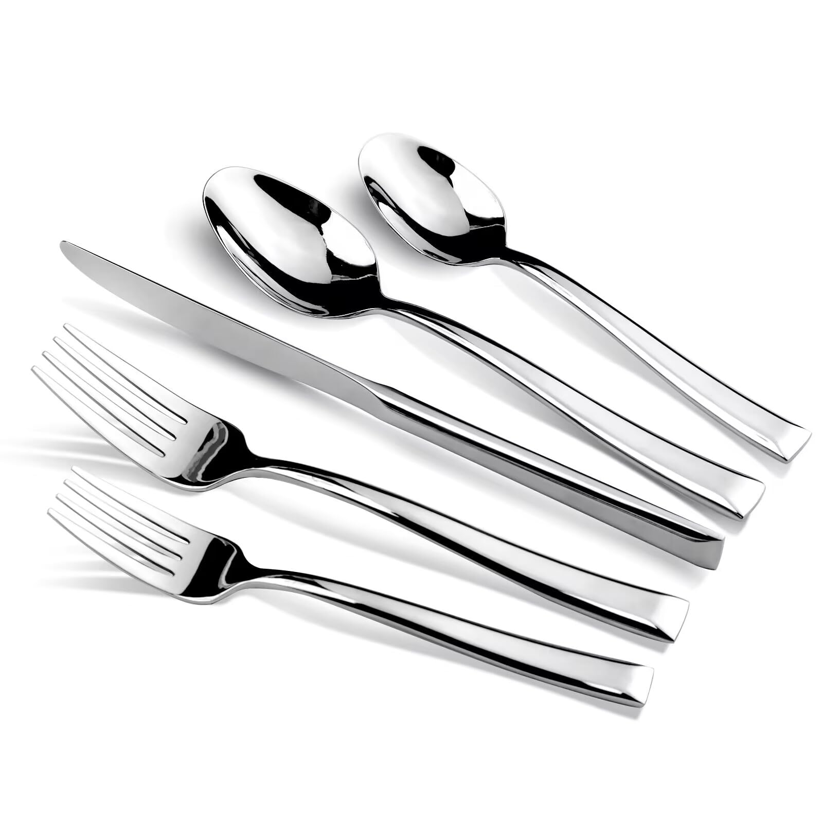 Kikbioee 20-Piece Silverware Set, Forged Stainless Steel Cutlery Set, Bevel Handle Flatware Set, Modern Mirror| Dishwasher Safe| Service for 4