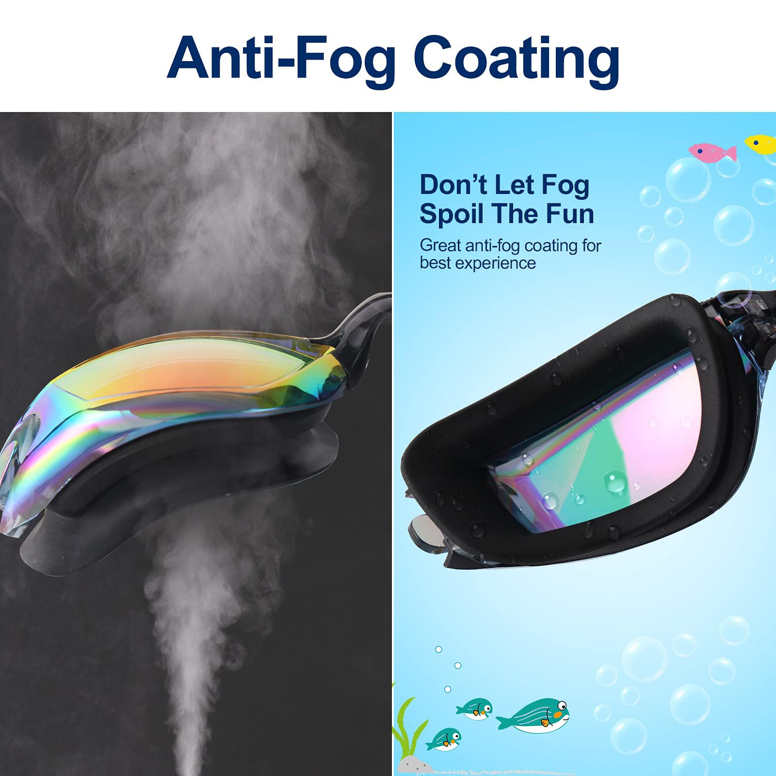 - EYE PROTECTION: Swim goggles are designed with innovative coating on the surface of the lens. The lenses reflect sunlight and block rays.【Note】Please take off the protective film on the surface of the goggles before use.