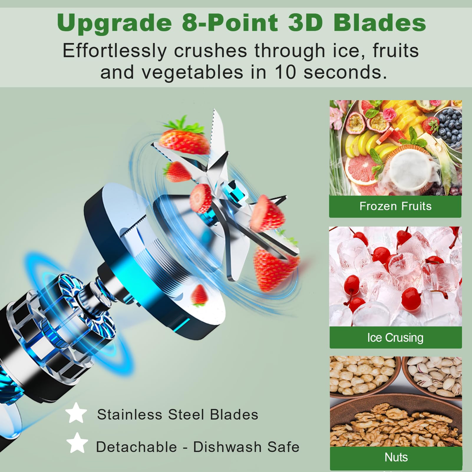 - Upgrade 8-Point 3D Blades in 5 Directions: This Upgraded 8-point blades of smoothie blenders which made of stainless steel, the durable blade will help to efficiently and quickly pulverize, recheive precise chopping and grinding result.