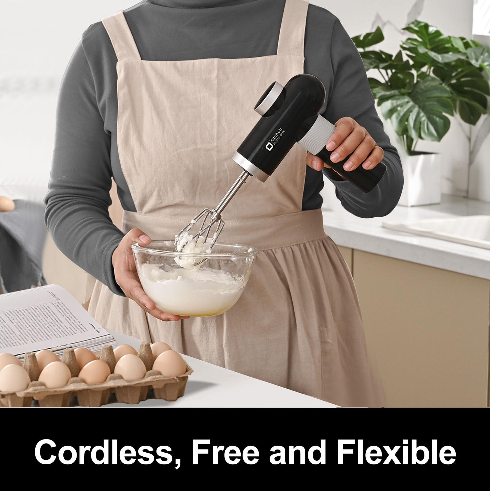 - Rechargeable Wireless Hand Mixers - No cord, no hassle. Weighs just 2.54 pounds. The best cordless mixer for outdoor picnics or limited kitchens, offering you the freedom to move and mix with ease. And the design of being upright depending on the base will not stain your countertop