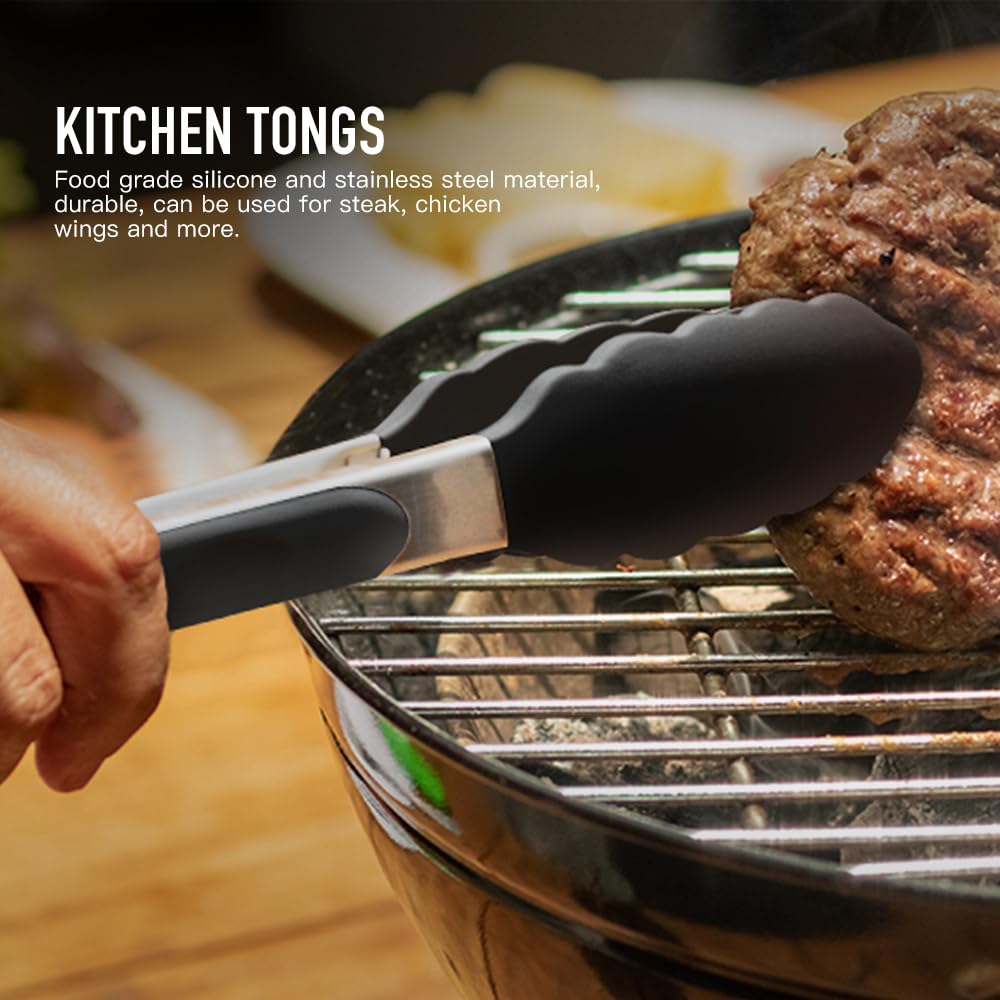 Kitchen Utensils Set - 446°F Heat Resistant Silicone Cooking Utensils Set-Kitchen Tools and Gadgets for Cooking Nonstick Cookware (Black)