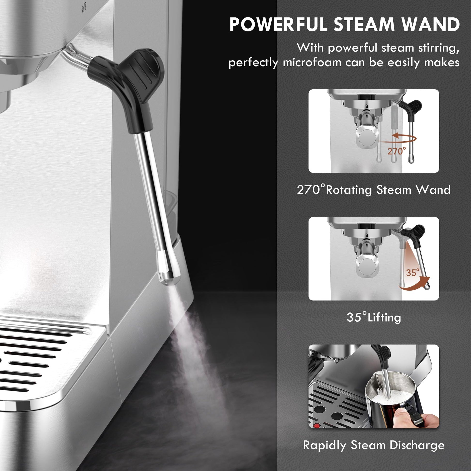 - High-Pressure Brewing: Experience the difference with our 20Bar high-pressure pump, designed for coffee aficionados who crave a bold and full-bodied espresso. Unlock the true potential of your coffee beans.