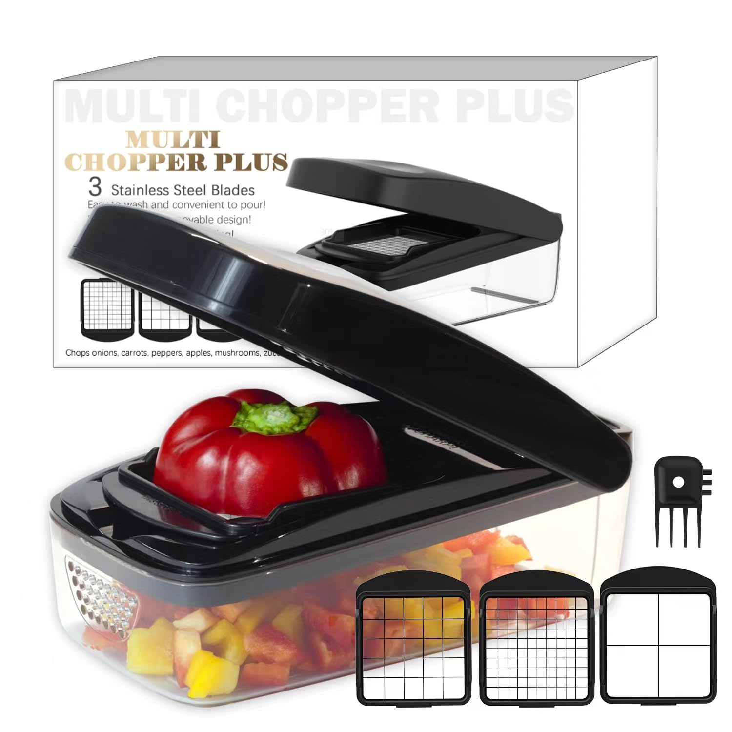 - ใ๐๐ฑ๐ญ๐ซ๐ ๐๐๐ซ๐ ๐ ๐๐ก๐จ๐ฉ๐ฉ๐ข๐ง๐ ๐๐ฅ๐๐๐ใOur food chopper's extra-large three interchangeable blades easily accommodate different sized vegetables, fruits and potatoes. Upgrade your kitchen with the chopper vegetable cutter for clean chopping of all kinds of food!