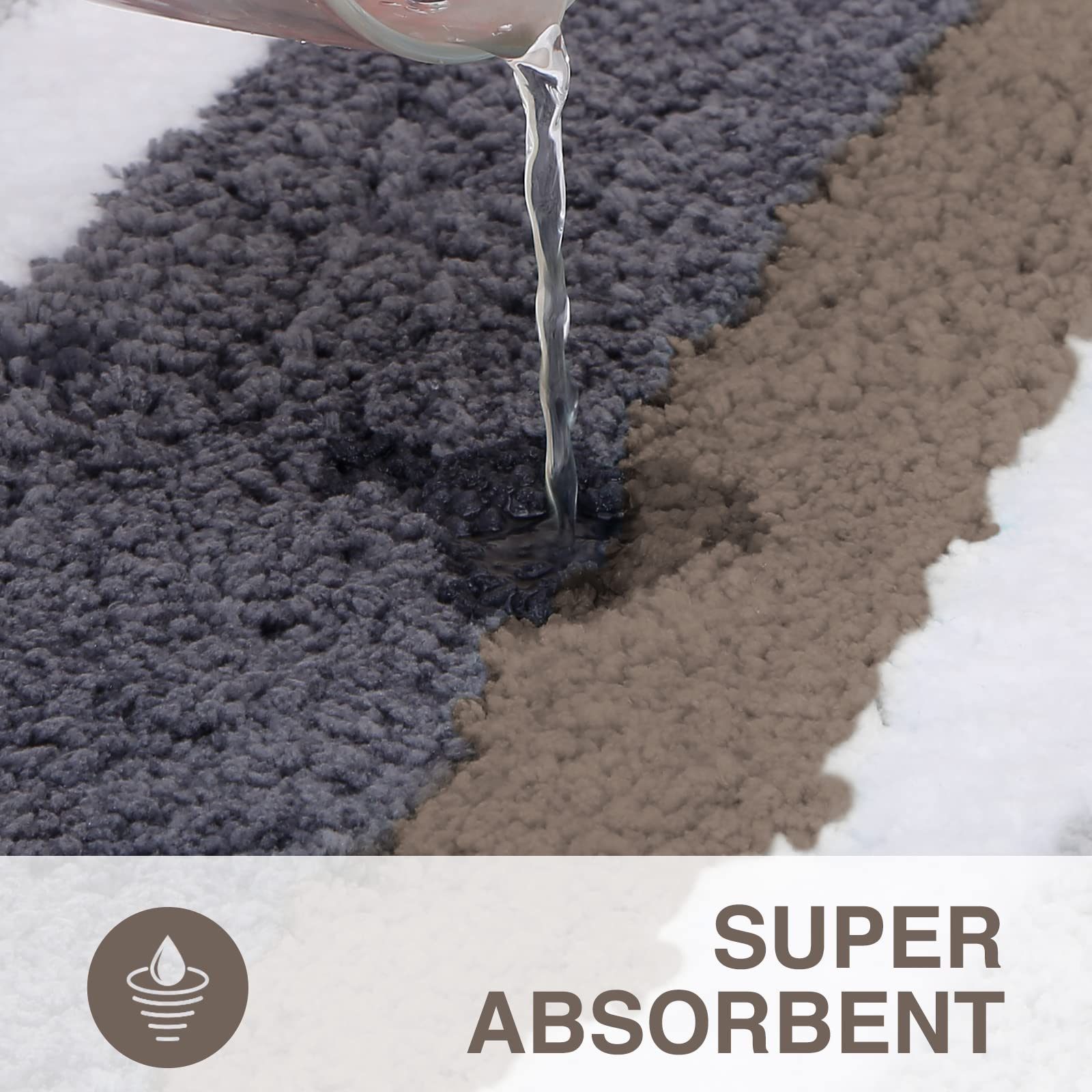 - Super Absorbent: The thickened bathroom mats will quickly absorbs the moisture from wet feet after a bath or shower, and locks the moisture in the carpet to keep your feet dry and to protect your feet from the cold floors
