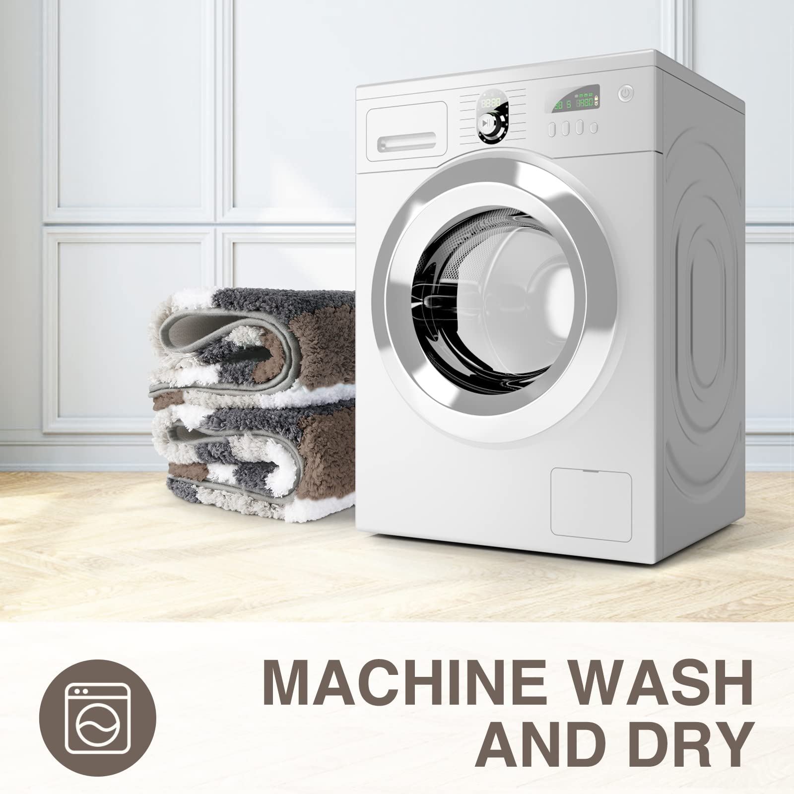 - Machine Washable: Simply toss it into the washing machine with gentle detergent on the gentle cycle and let air dry; with premium fiber locking technology, every fiber is firmly attached onto the backing so that the mat will not shed