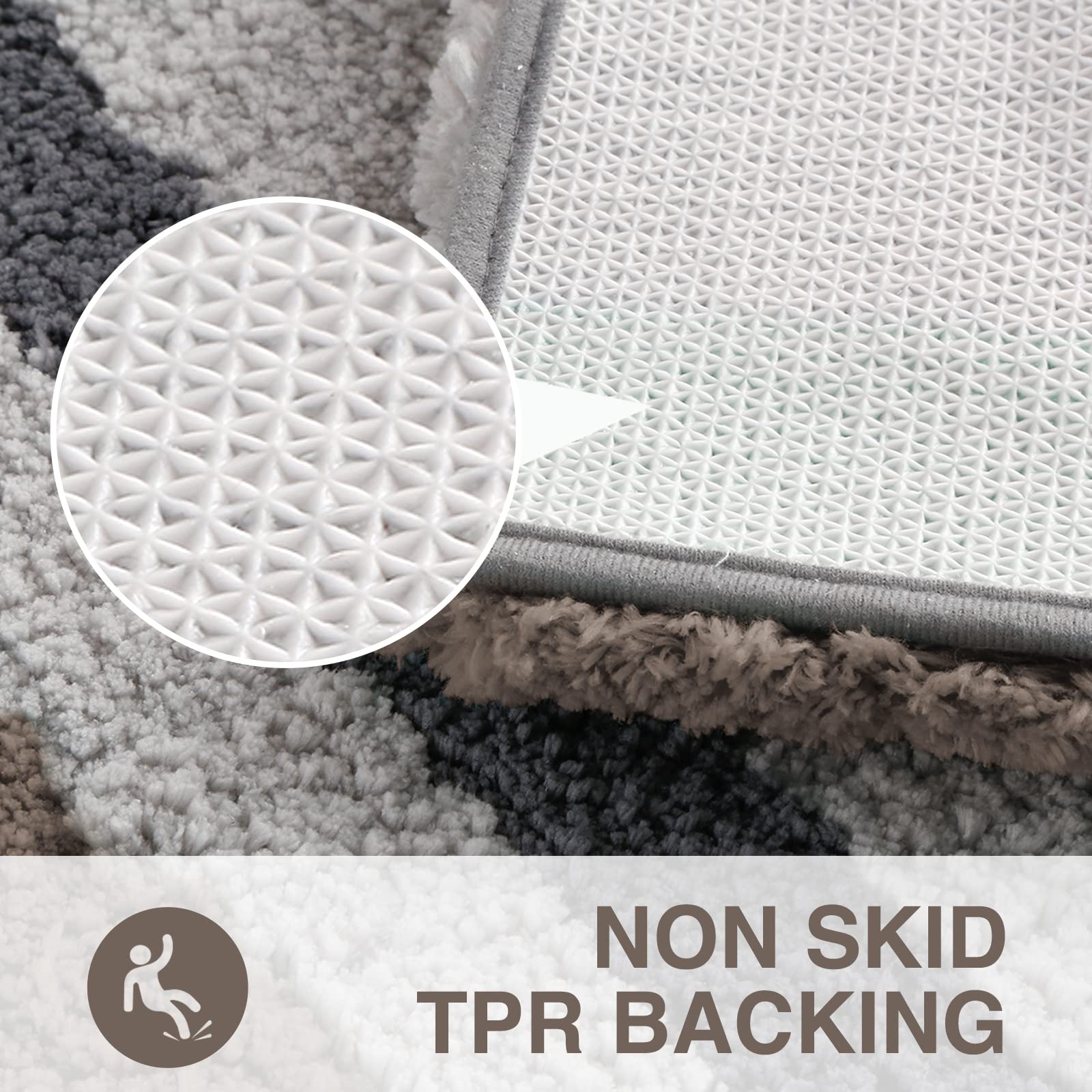 - Non Skid Backing: The bottom of the shower rug is made of non-toxic TP rubber that is skid resistant to tightly grip all kinds of floors including tile and wood; widely used in the bedroom, bathroom, living room, mud room, entryways and sink