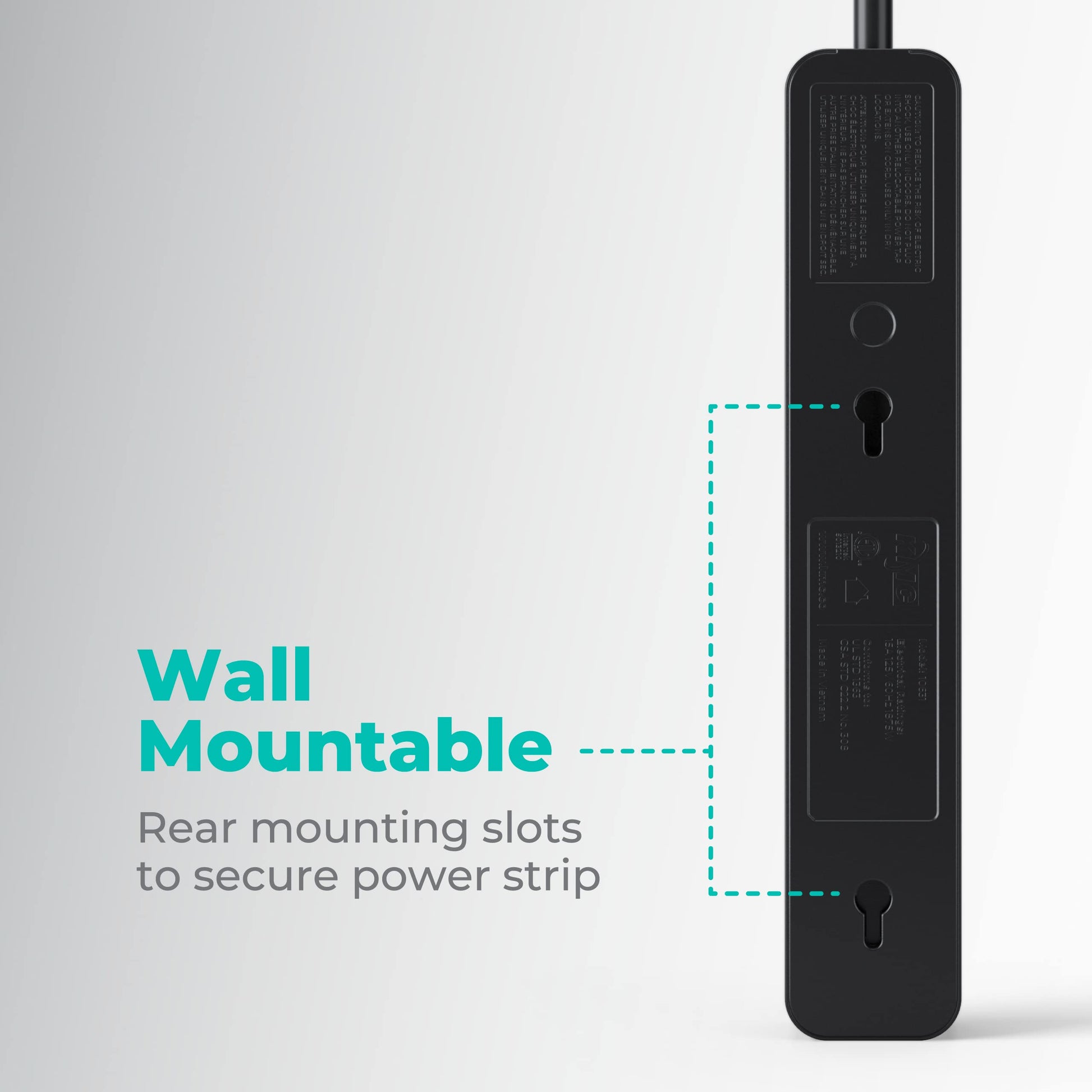 - Power Strip 6 in black, features a sleek, modern 6-outlet power bar delivering power without sacrificing style.