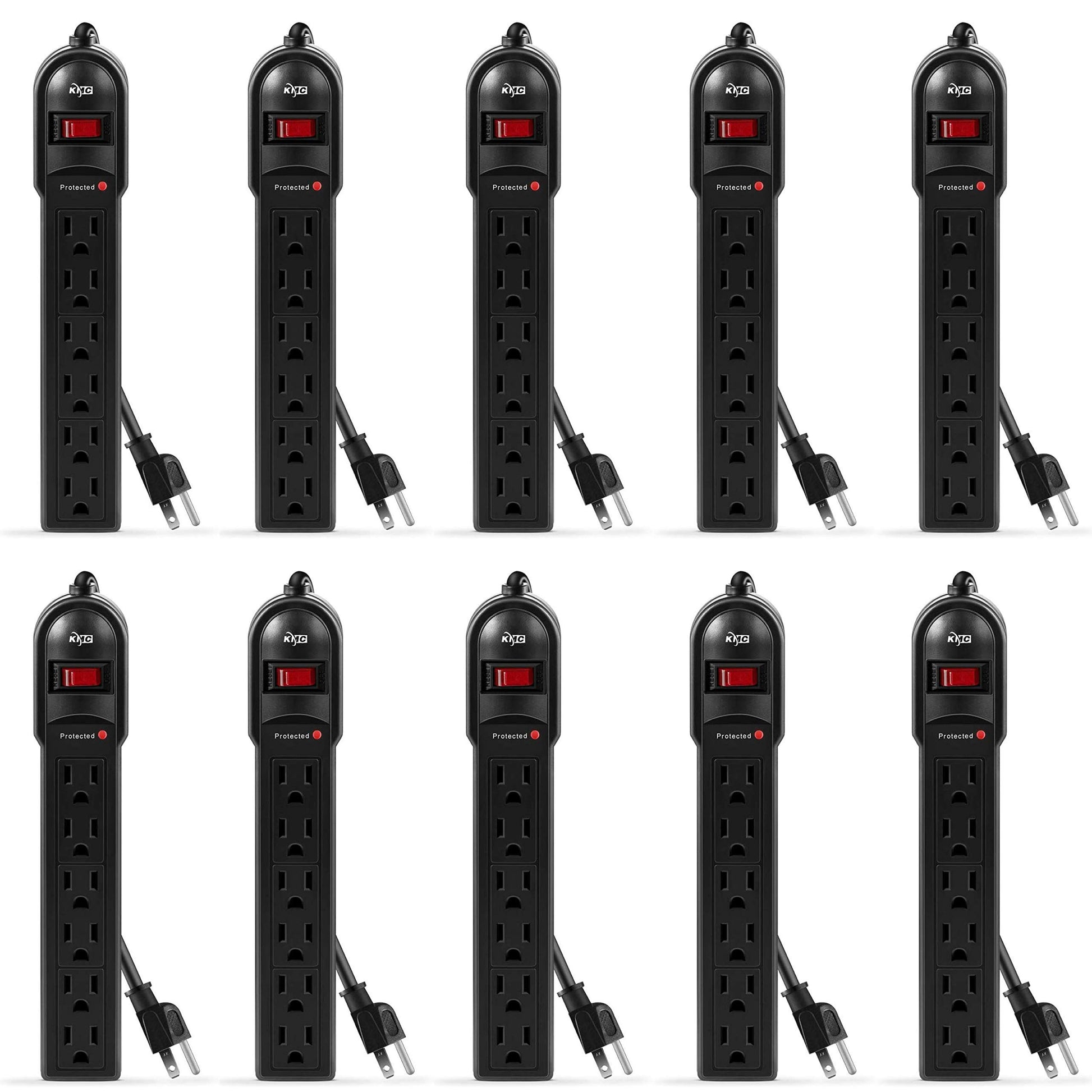 KMC 6-Outlet Surge Protector Power Strip 2-Pack, 600 Joule, Overload Protection, 2-Foot Cord