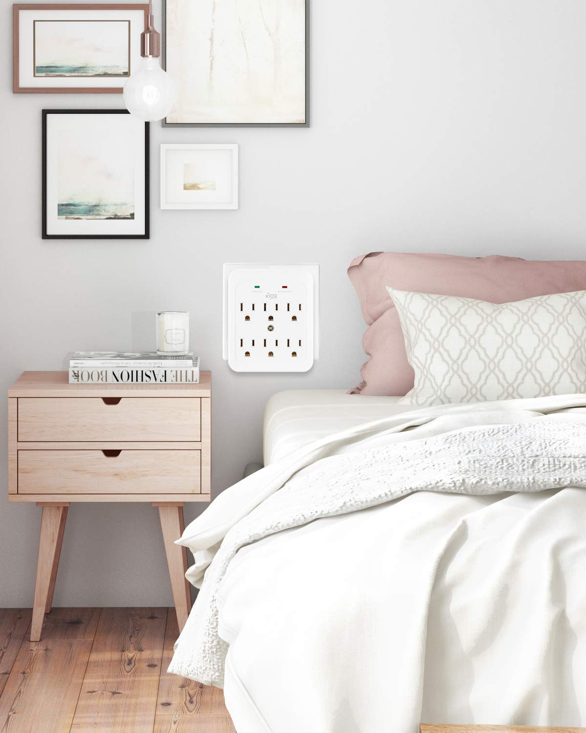- 6 AC Outlets: the extended 6 outlets fit 6 standard plugs simultaneously, with built-in 980J surge protection components.The “Protected” indicator LED light turns on to show your devices are protected against electrical spikes at the maximum.