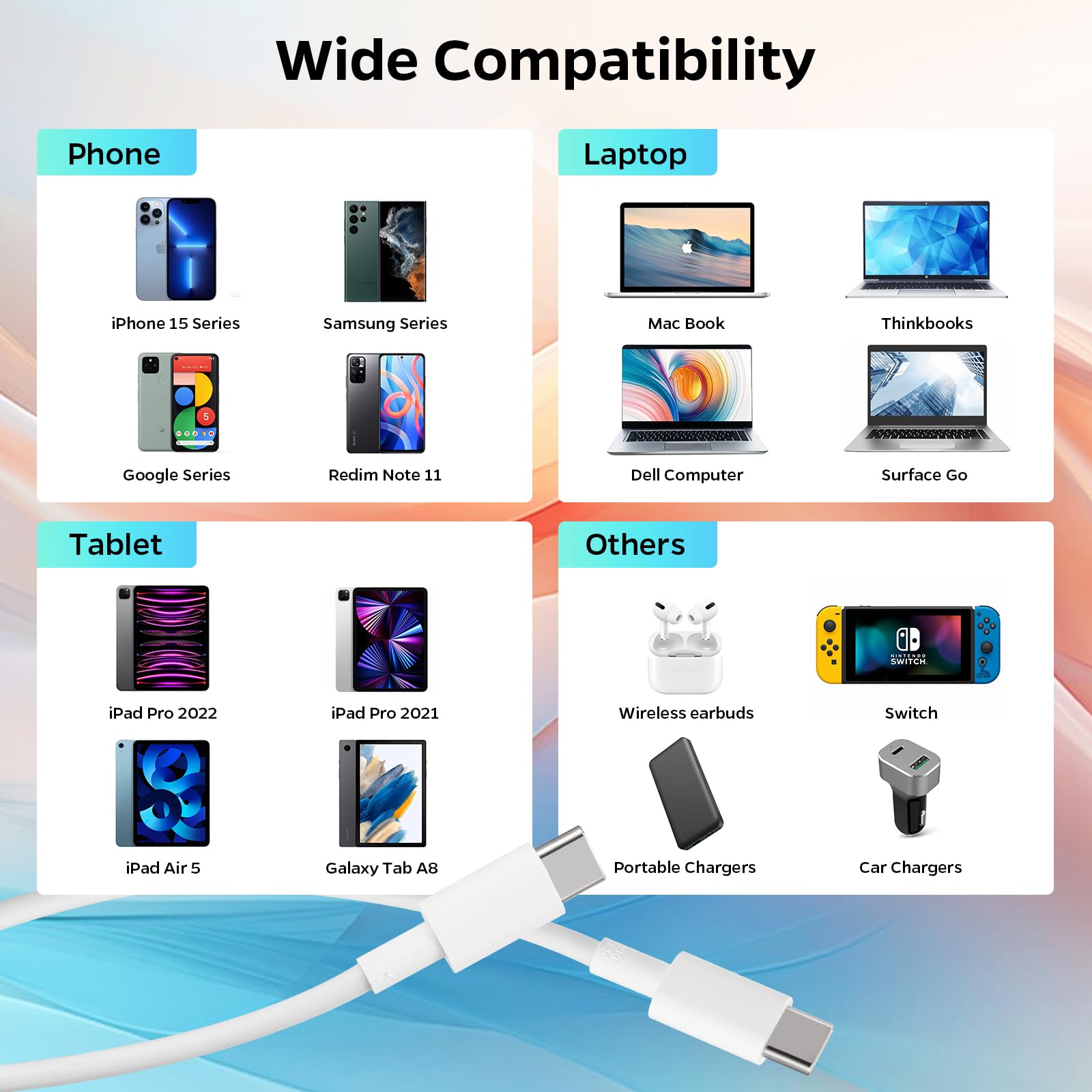 Kobilar USB C to USB C 65W [5-pack,3ft],USB C charging cable for iPhone 15 charging cord, MacBook Pro, iPad Pro Air, Mini 6, Google Pixel, Samsung Galaxy S23,Switch-USB C Cable to USB C