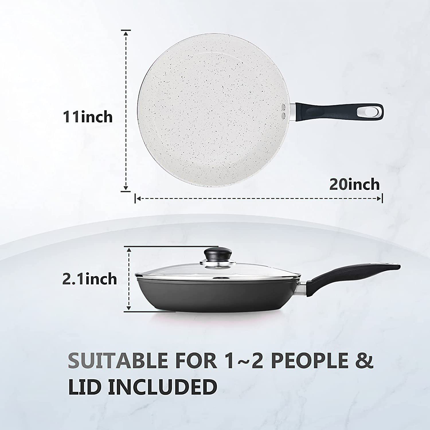 - 🥣[Excellent Quality & Unique Appearance] - This elegant frying pan is made of aluminum alloy, wrapped with ceramic non stick layer, white inside, black texture of design, and beautiful black coating outside. The frying pan is also equipped with an insulated handle. Its ergonomic curvature allows you to feel comfortable when holding it, and it can also be insulated.