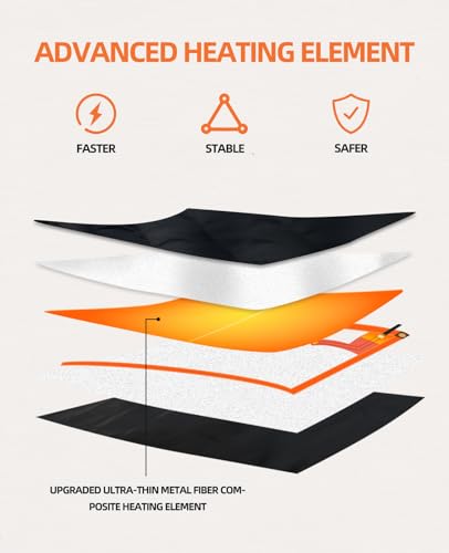 - UPGRADED HEATING ELEMENT: Heating vest using composite metal fiber heating wires generates heat faster and more stable than traditional carbon fiber and graphene heating elements, more effectively protecting areas susceptible to cold.