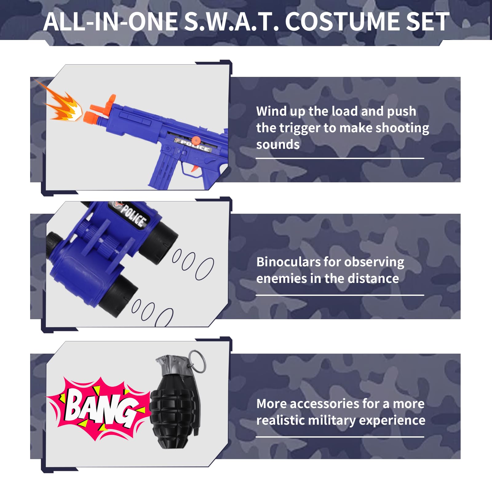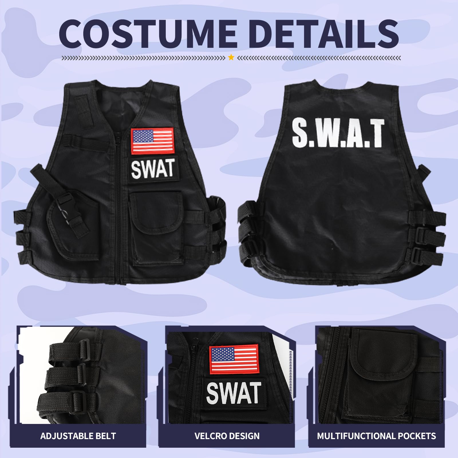- 【VERSATILE ROLE-PLAY】- This SWAT costume is not just for Halloween; it's perfect for various occasions. Whether it's a costume party, school event, or a day of imaginative play, your child will love becoming a police officer. It's an excellent way to introduce them to the world of law enforcement and encourage their fascination with this noble profession.