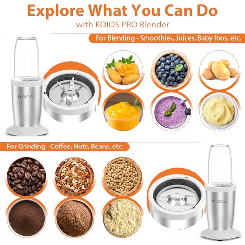 - Powerful Personal Blender - This portable blender has 900W copper motor with pulse technology and 22000rpm speed which allows your single blender for shakes and smoothies to expand your creativity in the kitchen. Chopping, blending, mixing, grating, pureeing, grinding become quick and simple tasks with KOIOS Pro personal blender that make cooking more fun.