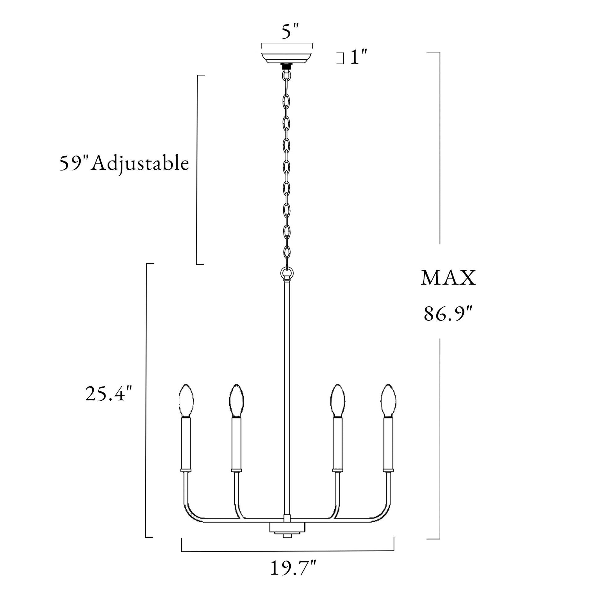 - [Perfect Fits] This eye-catching centerpiece is 19.7” in width x 25.4” in height, making its size perfect for any of your rooms. The canopy comes in a standard 5“ diameter and 1” height, designed to fully cover the standard size of the junction box. It comes with a 59” height adjustable chain giving you the option of adjusting height between 86.9” to 27” from ceiling to bottom based on your need