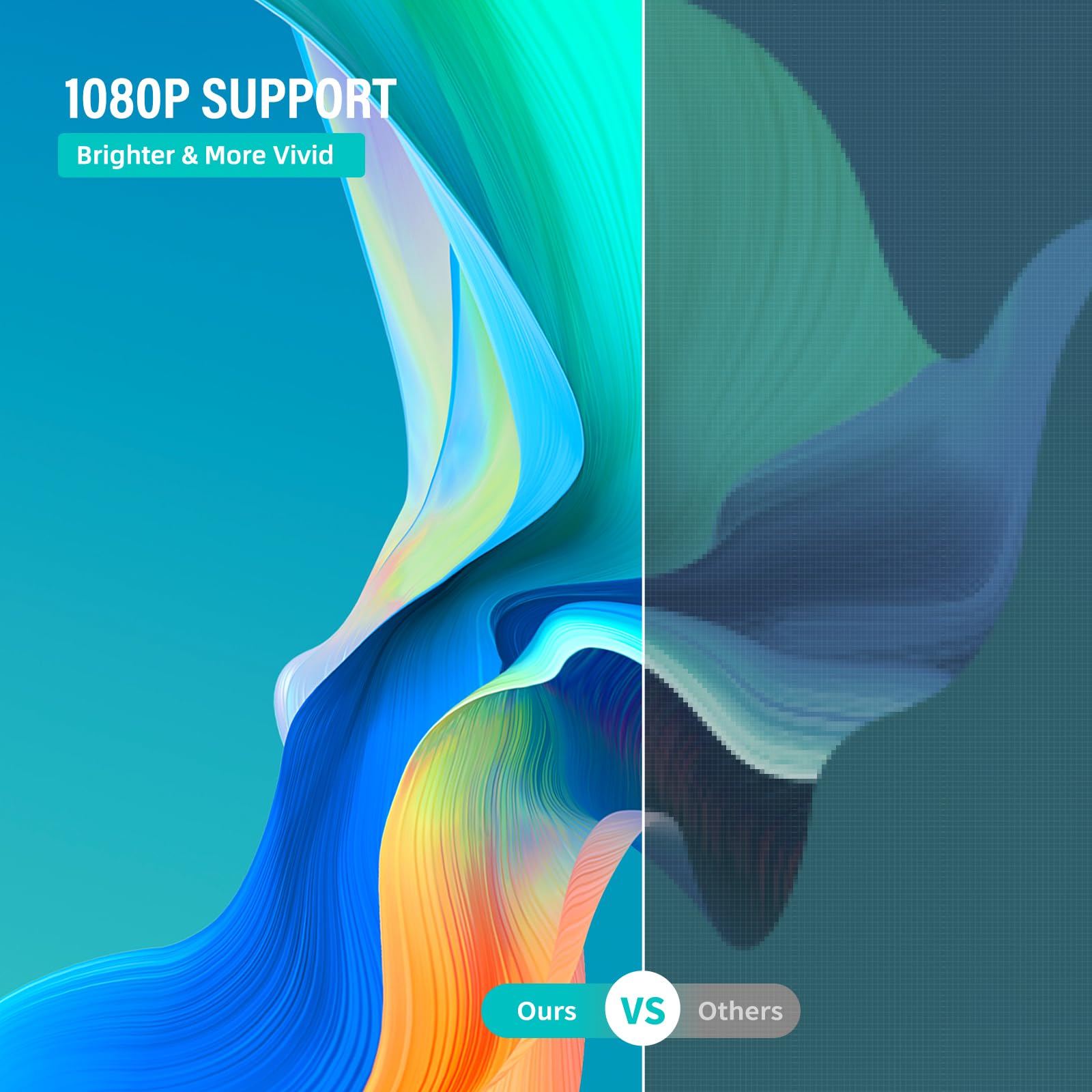 - Bluetooth 5.4 audio: With built-in stereo speaker, you can enjoy a cinematic audio-visual experience without connecting external speakers. Also, this mini projector built-in bluetooth 5.4 technology to make the audio synchronization faster and more stable. With this bluetooth projector, you can connect your ideal bluetooth speakers or headphones wirelessly at any time to get more wonderful sound. Please Note: Bluetooth connection is only for audio transmission with audio devices (bluetooth speakers or bluetooth headphones etc.), which cannot be used on smartphone screen mirroring.