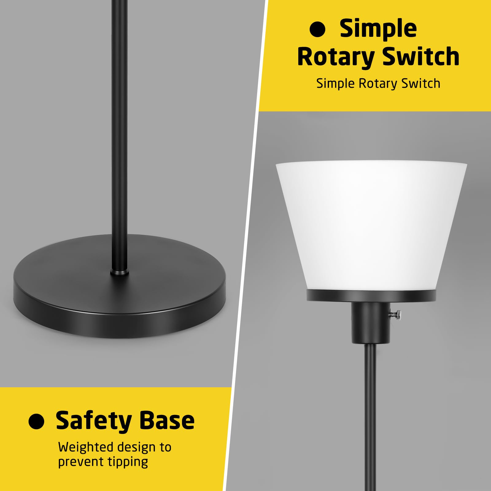 - Rotary Switch & Compatible with Smart Devices: The black floor lamp is operated by a rotary switch located on the lamp head. It requires an E26 base bulb, and the light is turned on and off by turning the rotary switch clockwise. To align with smart lifestyles, our corner light is also compatible with smart plugs (not included) and smart bulbs (E26 base bulbs), enabling control through your phone. This intelligent design simplifies your life and enhances home automation.