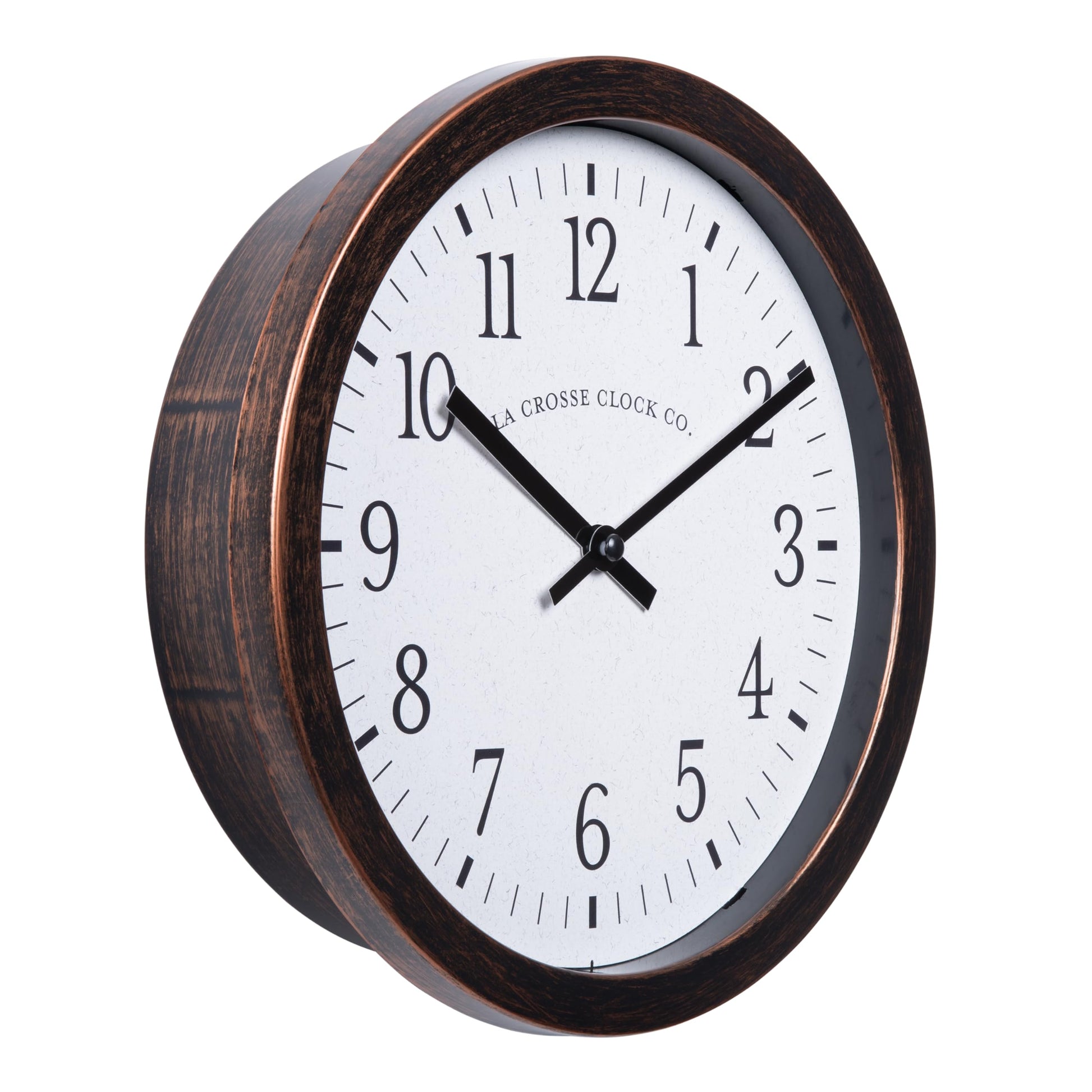 Details: La Crosse Clock introduces it's 9.80-inch Oil-rubbed bronze quartz wall clock. This analog clock features soft step quartz time movement with metal hands. Keep important valuables out of view in its hidden compartment. Conceal small objects in plain sight without anyone knowing on the 2.95 inch tall x 2 inch deep shelves. Single AA alkaline battery required.