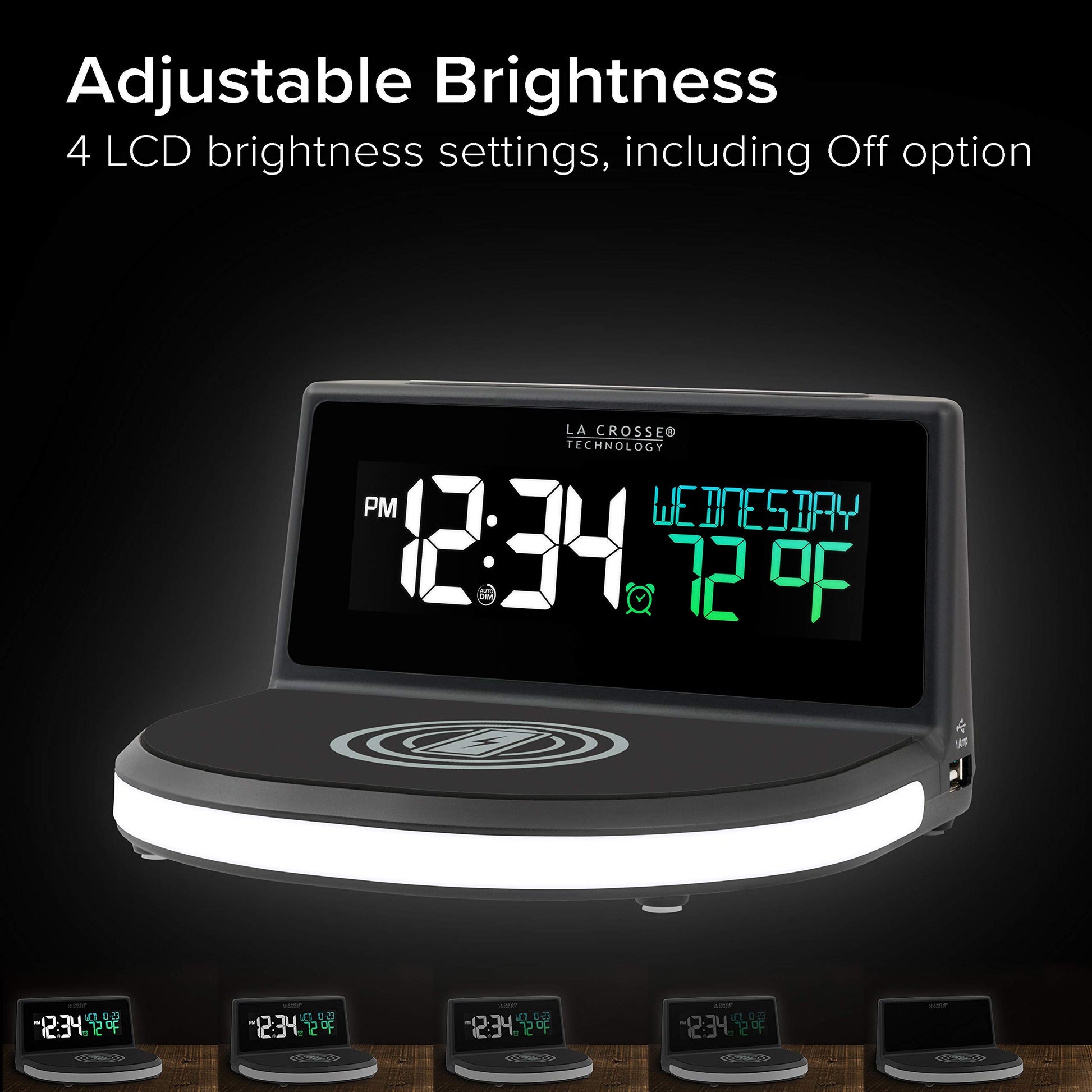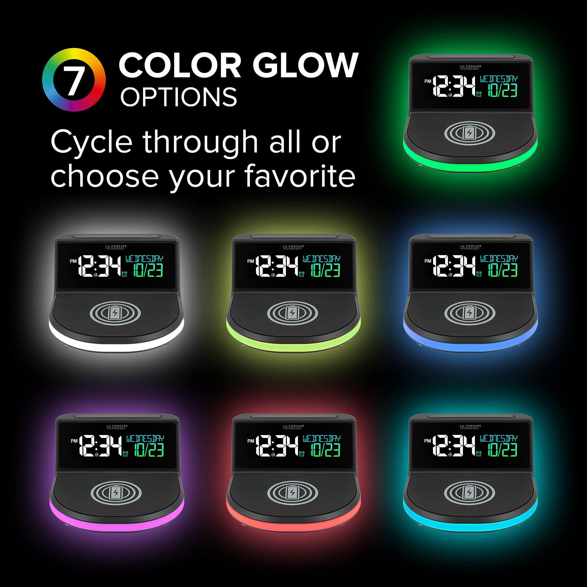 La Crosse Technology 617-148V2 Qi-Certified Wireless Charging Alarm Clock with Glowing Light Base