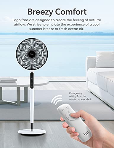 Lago 14-Inch Diameter 9-Speed Oscillating Floor Pedestal Fan with Electric Remote Control - 9 Wind Speeds, Tilt-Back Fan Head, Adjustable Oscillation, Quiet Cooling Fan
