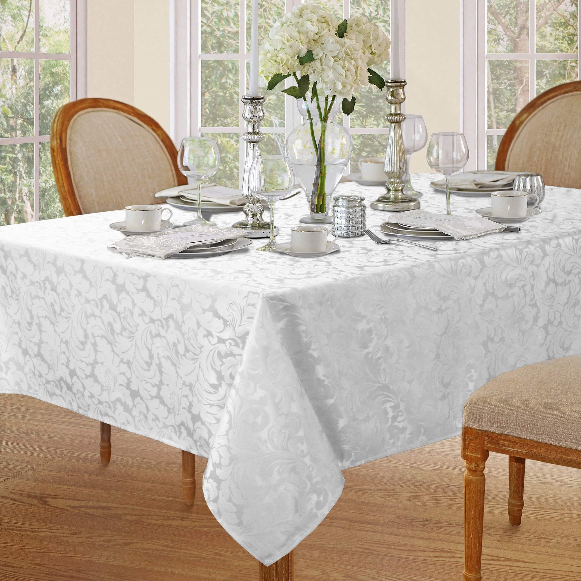 Lahome Elegant Damask Jacquard Tablecloth - Polyester Fabric Spillproof Water Resistant Washable Table Cover for Kitchen Dining Room Wedding Party Home Decor (White, Rectangle - 60" x 84")
