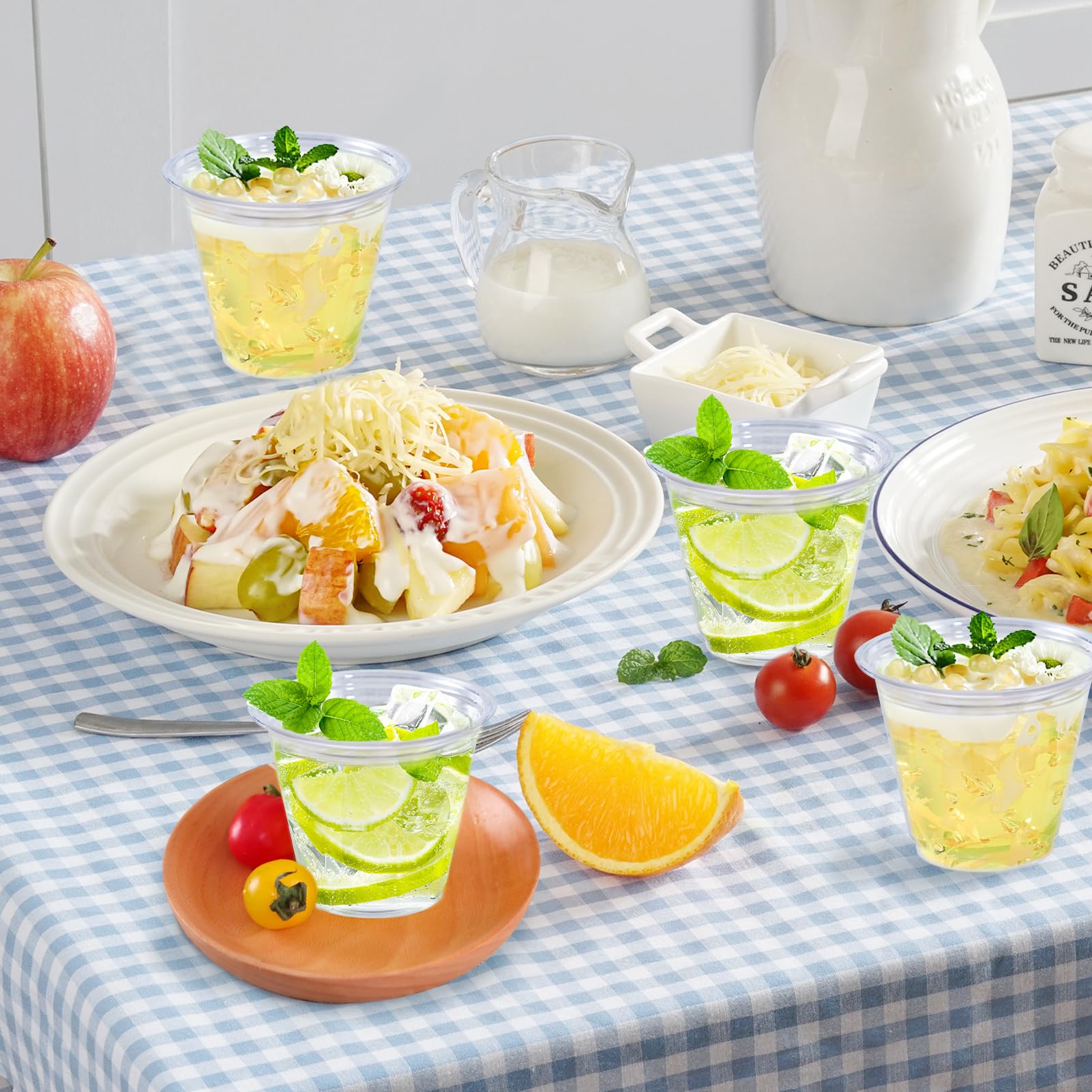 - Elegant Appearance: The disposable clear plastic cups feature with simple design and transparent texture to show the color of your drinks, which can enhance the grade of your drinks and add more fun to your drinking time. The 9oz disposable party cups are suitable for a variety of colors of drinks and food.