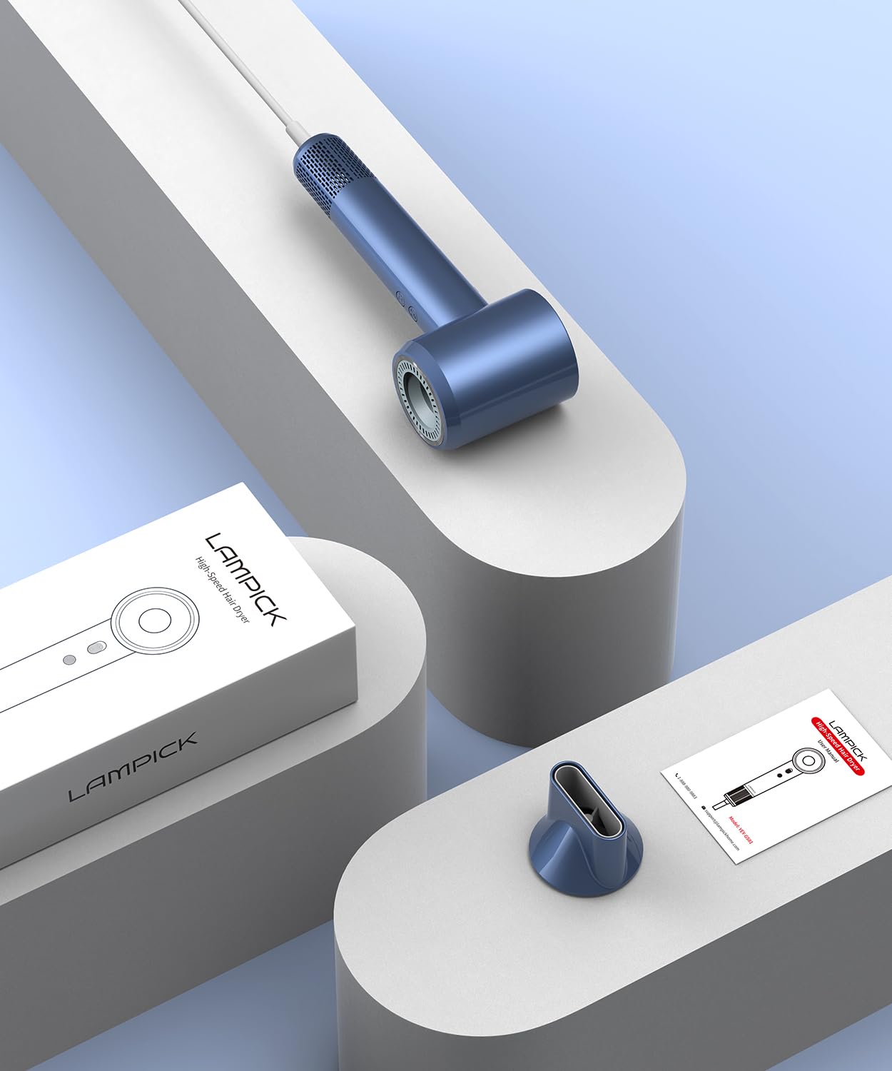 - 【High-Speed Motor for FAST DRYING】 With a high speed brushless motor of 150,000RPM and more open design of ducts, LAMPICK professional hair dryer can provide powerful airflow with 36m/s wind speed. 6X times faster than traditional hairdryers, this blow dryer can dry your hair in no time and reduce hair damage by increasing the wind speed instead of relying on high temperatures.
