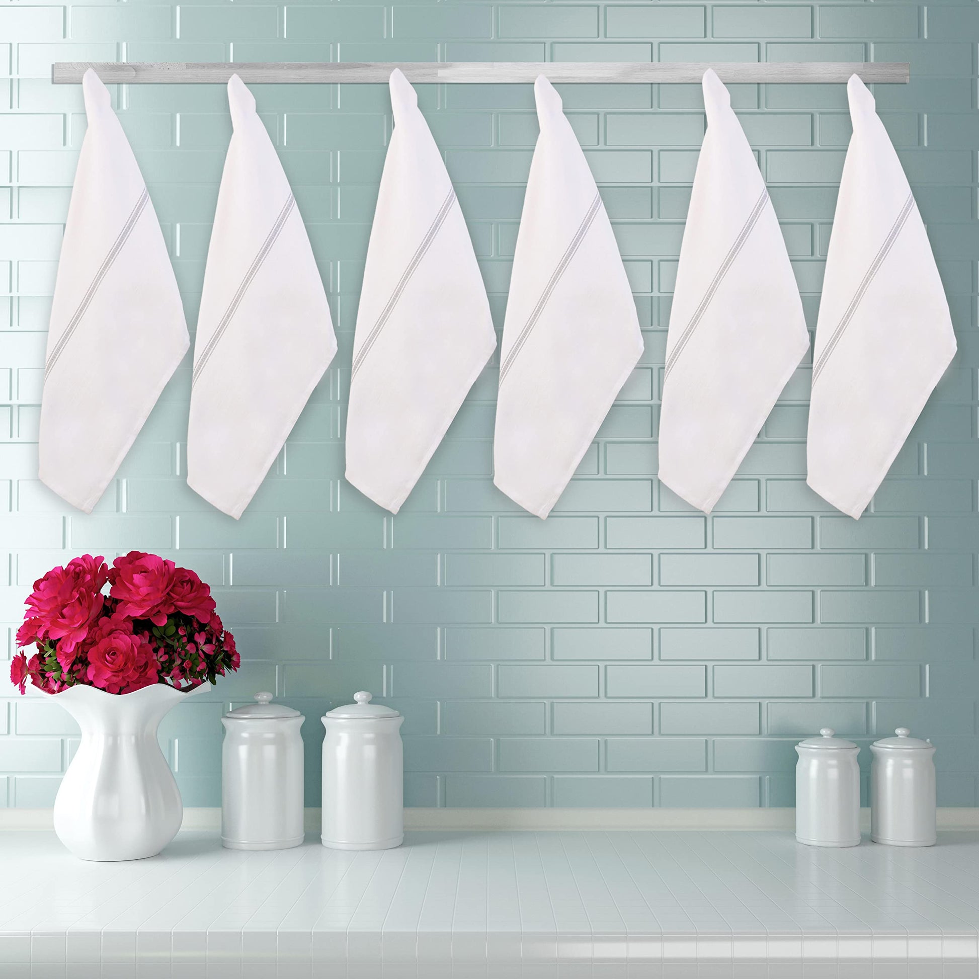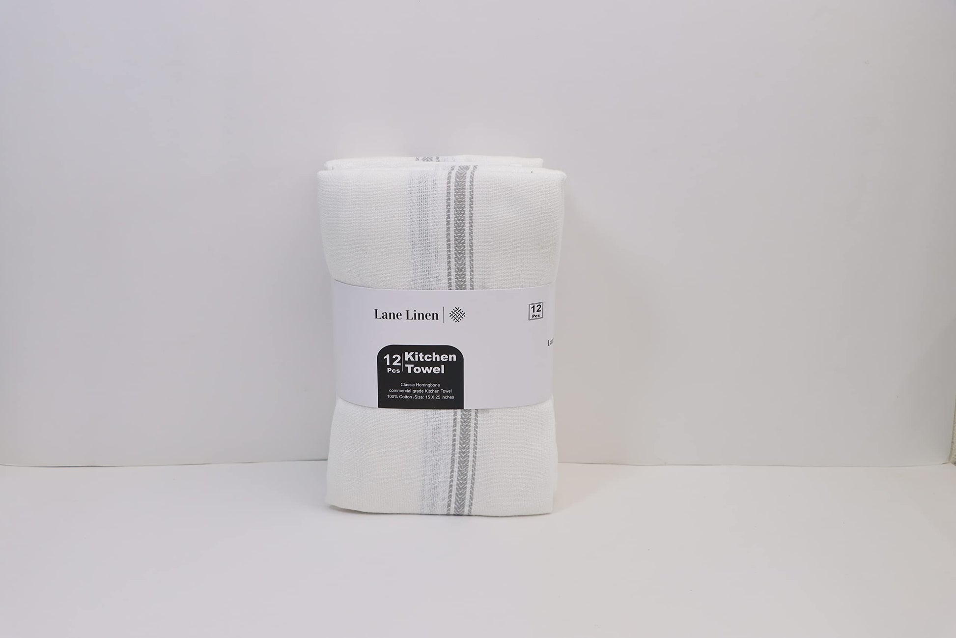LANE LINEN Kitchen Towels Set - 100% Pure Cotton Super Absorbent Hand Towel, Grey Tea Towels, Soft & Durable, Pack of 12 – 15”x25”, Grey Stripe