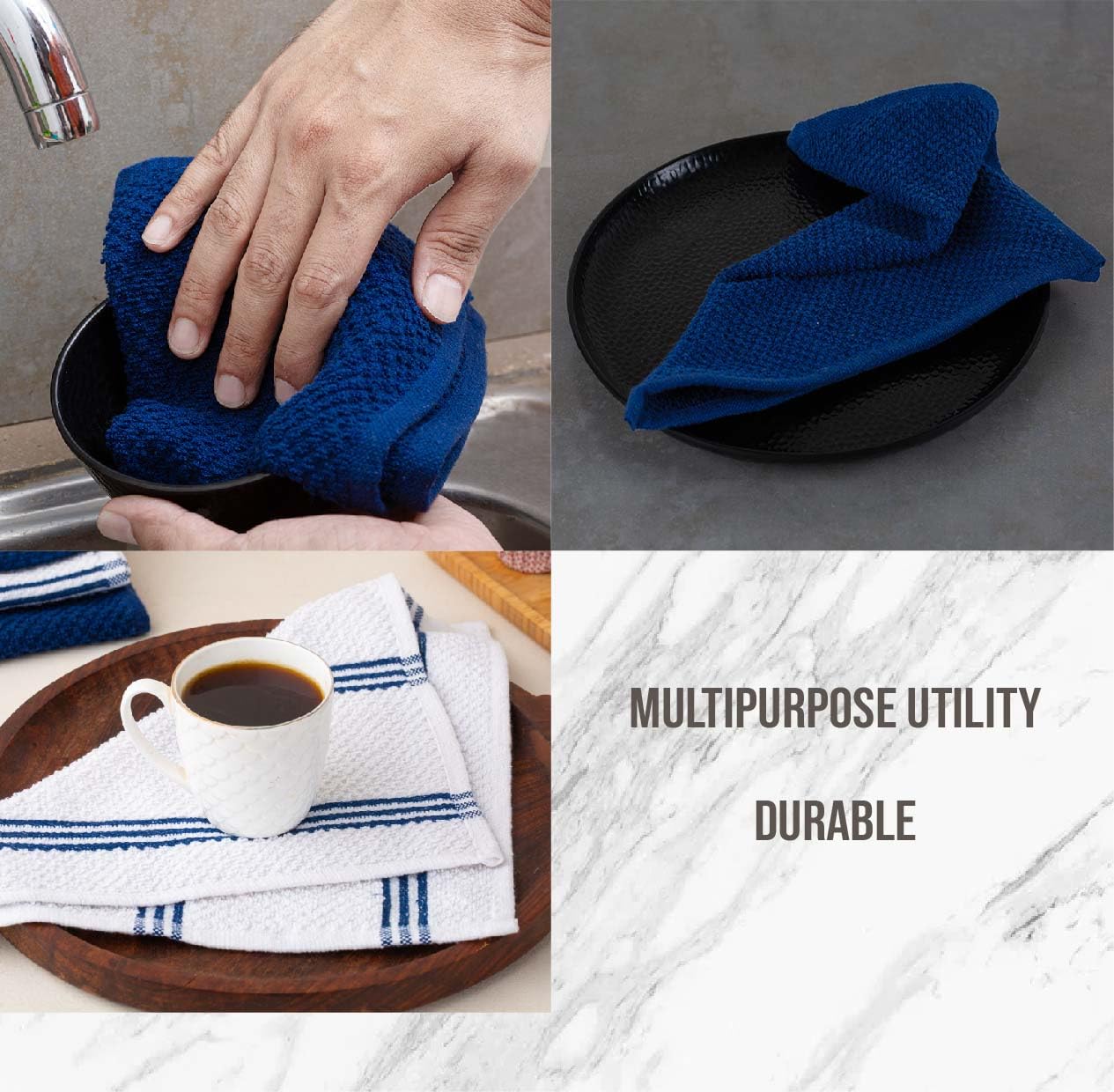 Lane Linen Tea Towels for Kitchen - 16 Pc Kitchen Towel Set with Silicone Oven Mitts and Pot Holders Sets, Cotton Kitchen Towels, Absorbent Dish Towels, Hand Towels for Kitchen - Indigo