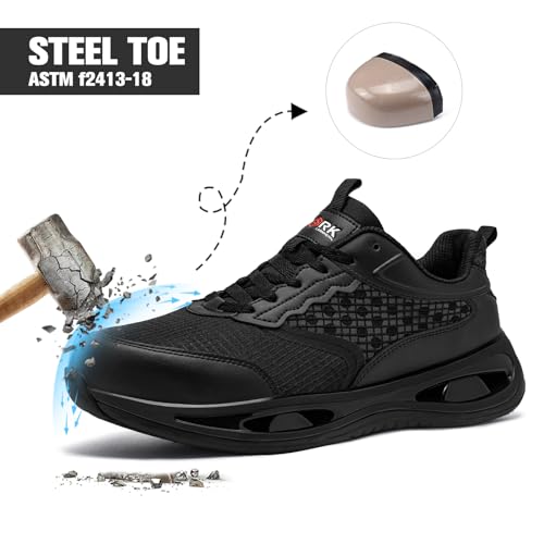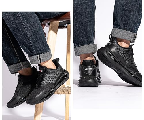 LARNMERN Steel Toe Shoes Men Breathable Work Sneakers Safety Lightweight Comfortable Tennis Shoe Indestructible Sneaker(10.5 Men, Light Black)