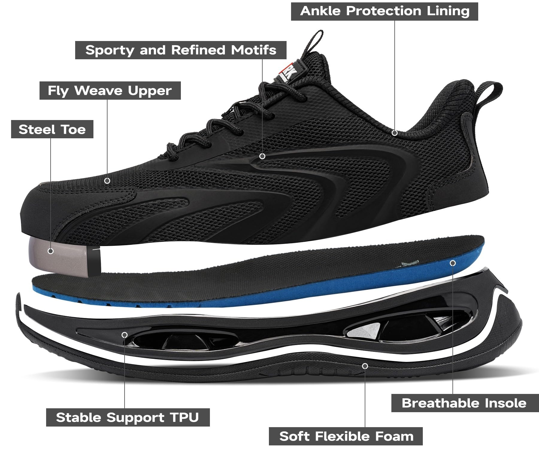 - SAFETY PROTECTION: Designed with steel toe to meet the ASTM F2413-18 safety standards and the protection needs of light industrial workers, ensuring workplace safety.
