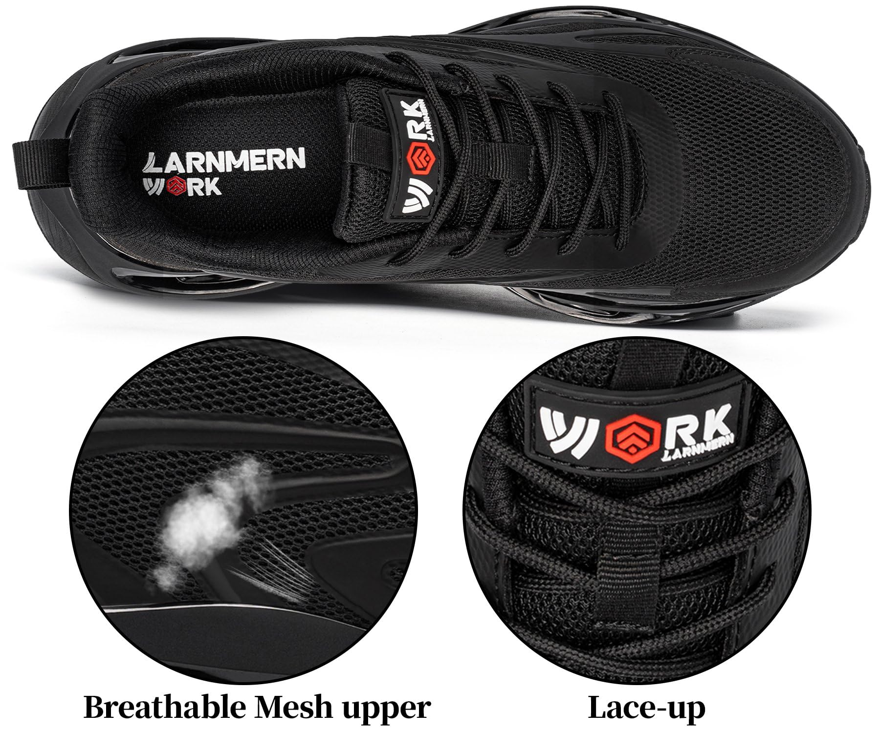 LARNMERN Steel Toe Shoes Men Breathable Work Sneakers Safety Lightweight Comfortable Tennis Shoe Indestructible Sneaker(10 Men, Black)