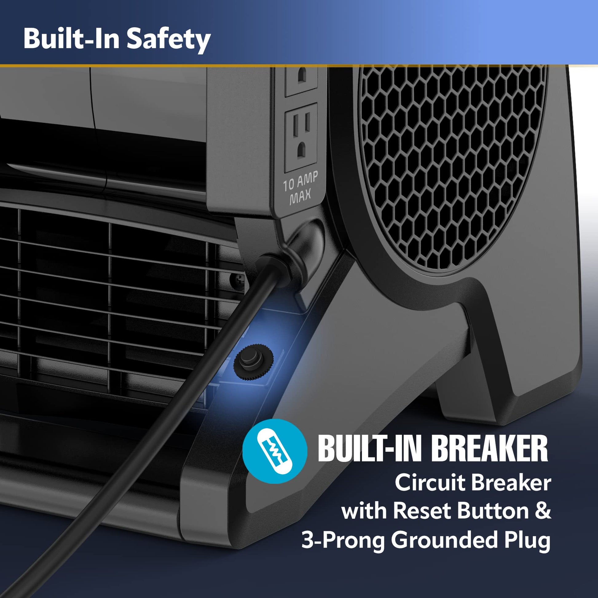 - ✅【CONVENIENT FFEATURES】This powerful utility blower fan features two 120-volt grounded outlets for accessory use; the pivoting action allows you to direct the airflow right where you need it for cooling, air circulation and ventilation