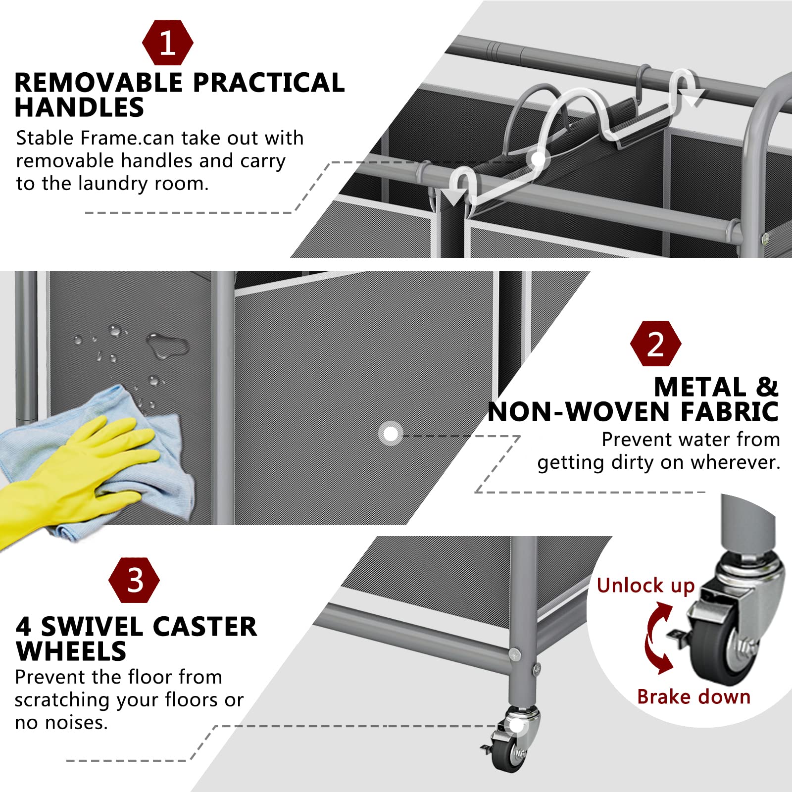 - 【Portable Laundry Hamper 】Collapsible & Detachable - the laundry bags can be taken out and with easy lifting handles, you can easily carry the bags to the laundry room. This sorter cart can be used in many places: living room,bedroom, hotel and bathroom.