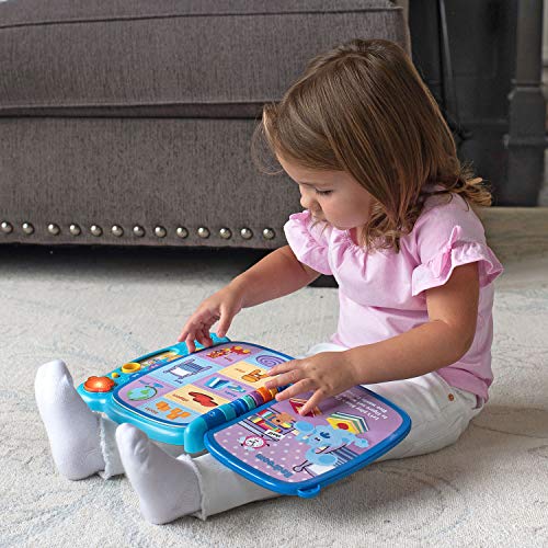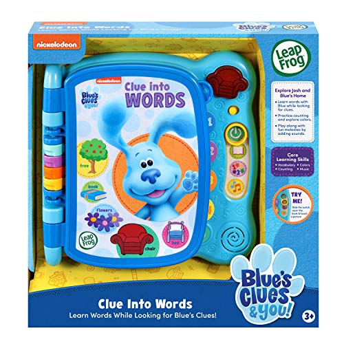 Details: Explore the names of objects in and around Josh and Blue’s home with the Blue’s Clues and You! Clue Into Words book. Play Blue’s Clues and learn about colors, words and counting along the way. Just like in the show, help Josh find three clues to figure out which book Blue wants to read. Ten touch-sensitive pages introduce 32 words across four learning categories. Brightly colored illustrations feature Blue, Magenta, the Shaker Family, Tickety Tock, Shovel, Pail and Mailbox. Kids can play sounds and hear music inspired by Blue and her friends. Intended for ages 3+ years. Requires 2 AA batteries. Batteries included for demo purposes only. New batteries recommended for regular use.
