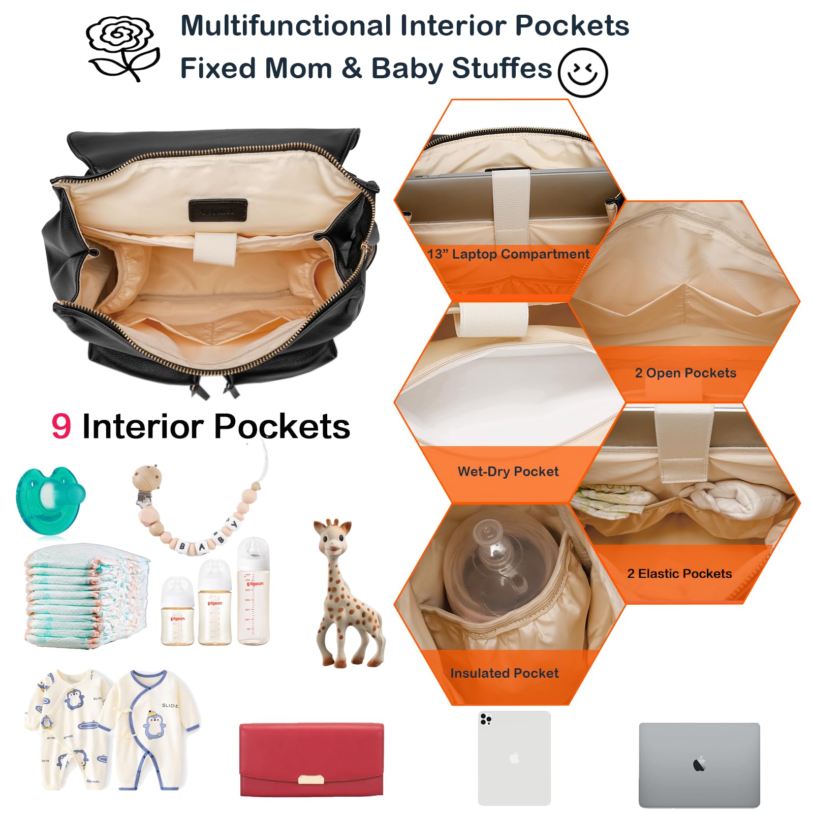 - The design prioritizes organization - this Multi-pocket (9 interior pockets & 5 exterior pockets) Diaper Backpack for Travel comes with multiple compartments of various sizes, ensuring every item has its own space. This enables easy retrieval of items while on the move, making travels comfortable and hands-free