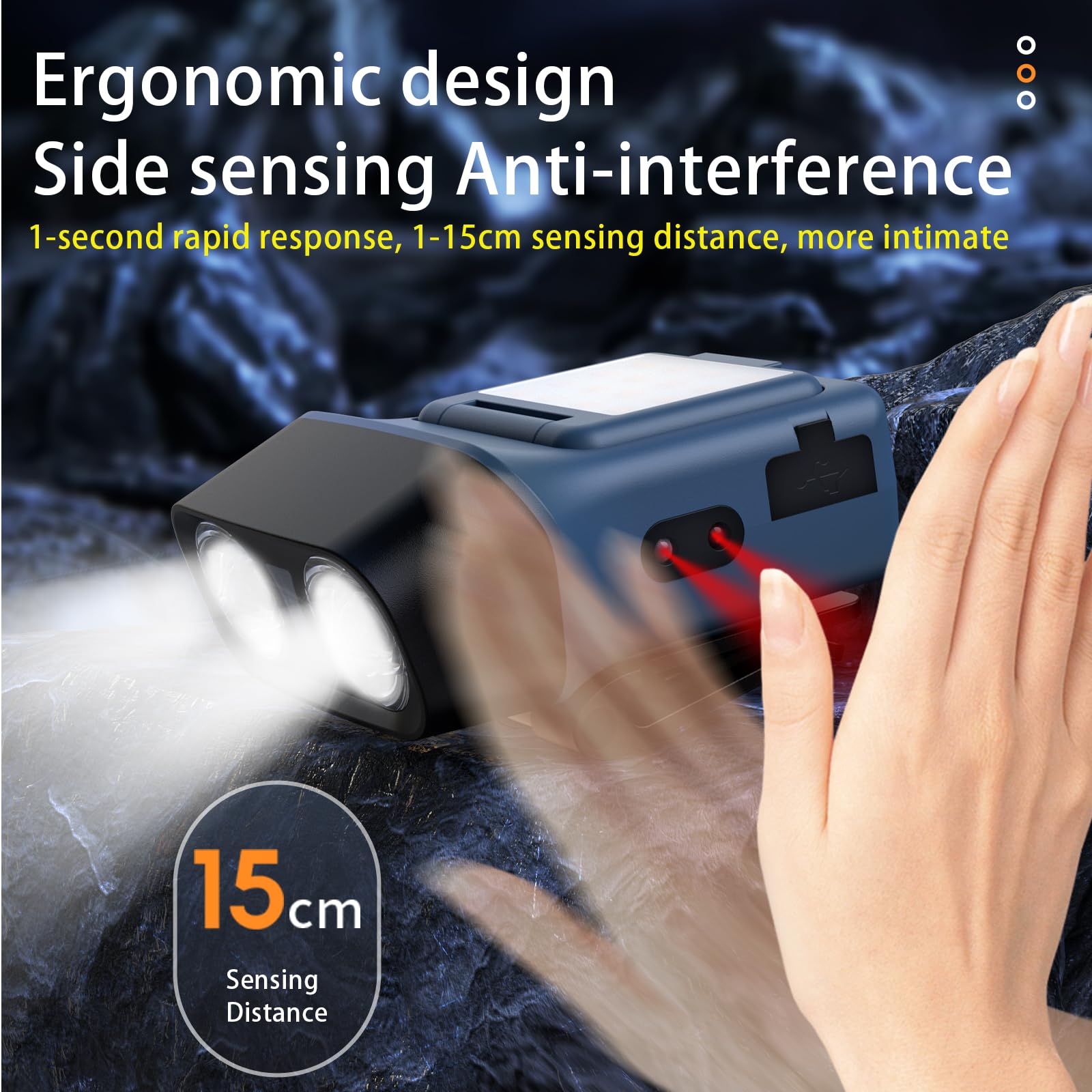 - IPX6 Waterproof and Motion Sensor Function: IPX6 waterproof rating. Using high quality shell sealing stronger at the same time waterproof is also stronger, outdoor waterproof without pressure, rainy days, snowy days, indoor, outdoor can be used normally, to meet a variety of application scenarios. Headlamp side sensor, wave your hand can easily turn on/off the light, more convenient, convenient in fishing more convenient. Simple to operate, prevent false touch and interference (1 second quick response, sensing distance 1-15cm)