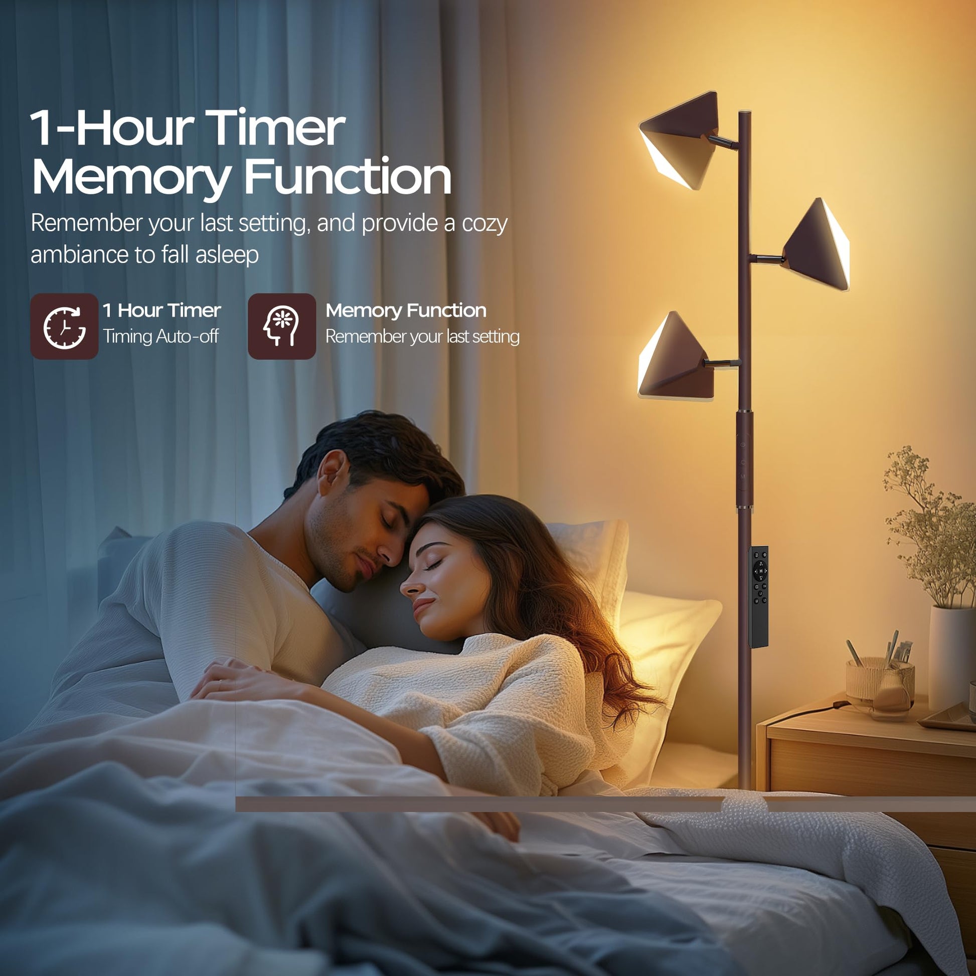 - 1 Hour Timer & Relaxed Nightlight & Eye-caring Reading: Set the lamp to turn off automatically after one hour with the built-in timer function. It is perfect for when you want to create a cozy atmosphere before bed, or when you need a gentle reminder to conserve energy. The LED floor lamp for bedroom Night Light Mode allows a comfortable ambience - warm yellow light to you and your family children & pets feel relaxed to sleep.