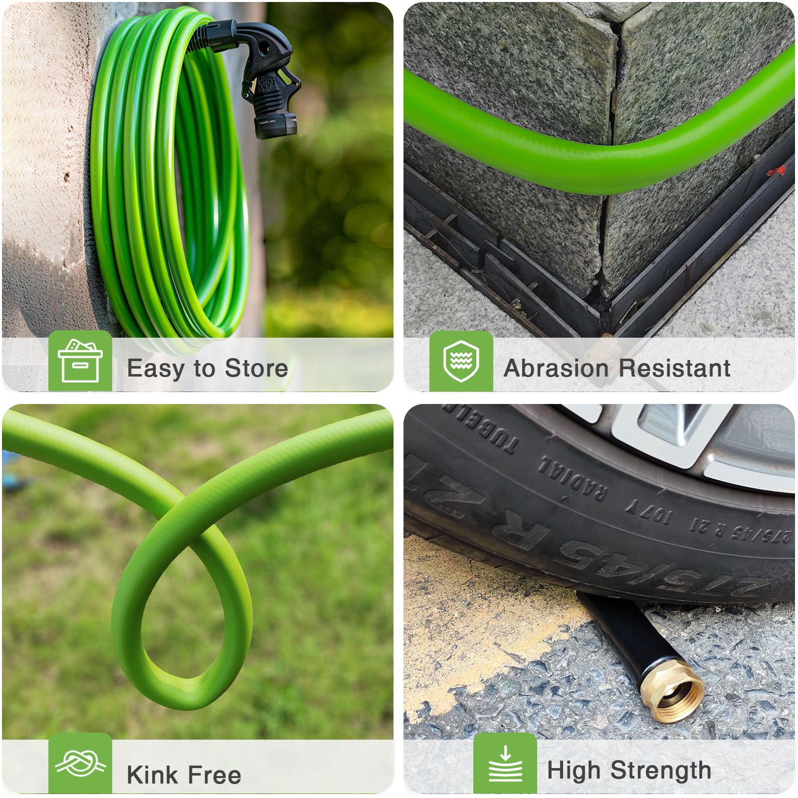 - NO MORE LEAK OR KINK: This garden hose has excellent flexibility, kink resistance, durability and leak-proof design. No more stopping to fix kinks during use, it can be coiled easily and lays flat without memory! Really strong wear-resistant and sturdy for many years of use.