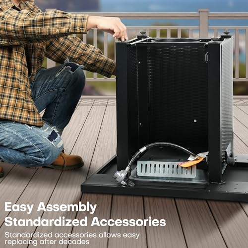 - Embrace the Warmth: The 28″ x 28″ x 24″ propane fire pit reaches up to 50,000 BTU of heat to create a comfortable and relaxing atmosphere for your friends and family. Also provides extra heat to keep your body warm. Add a touch of warm to your outside garden backyard deck and patio