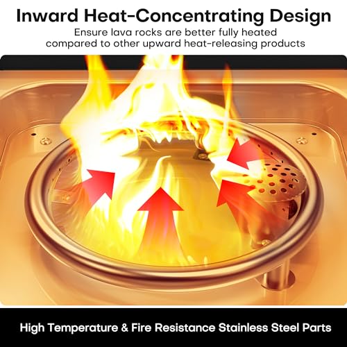 - 2 in 1 Outdoor Fire Table: Legacy Heating 28" fire table with burner lid and lava rock can be used in multiple ways. Remove the lid and turn the ignition on, you would get a perfect fire pit table heating your yard. With the lid on, you can put drinks and food on and get a wonderful coffee table. Epitome of luxury and functionality, providing the perfect blend of warmth, ambiance, and practicality